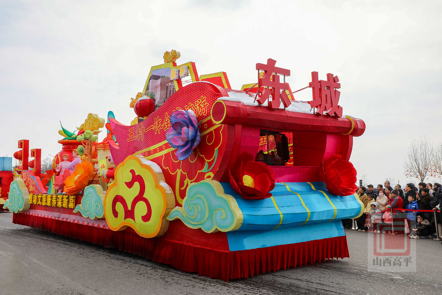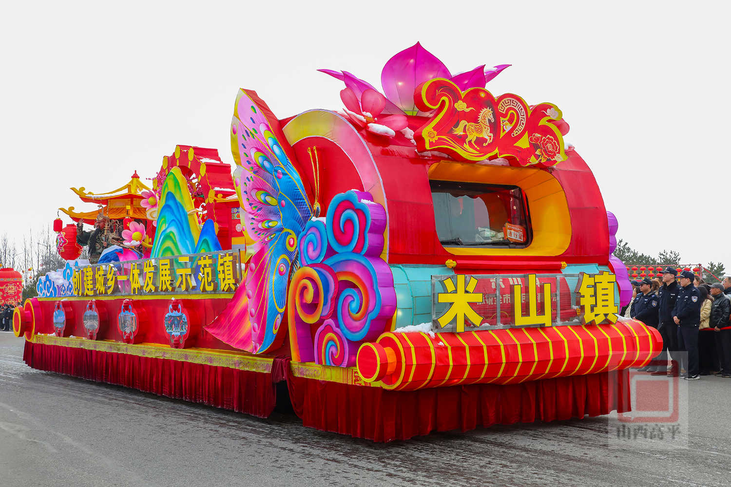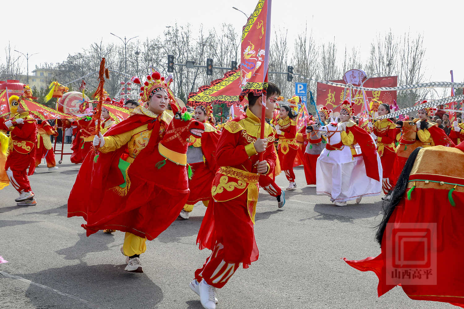 20辆彩车以中国红与金黄为主色调,巧妙融合了生肖骏马、炎帝文化、古建文旅、产业振兴、城乡发展等元素,造型精美、设计独特,全方位展现了高平厚重的文化底蕴、蓬勃的产业活力与日新月异的城市变化。