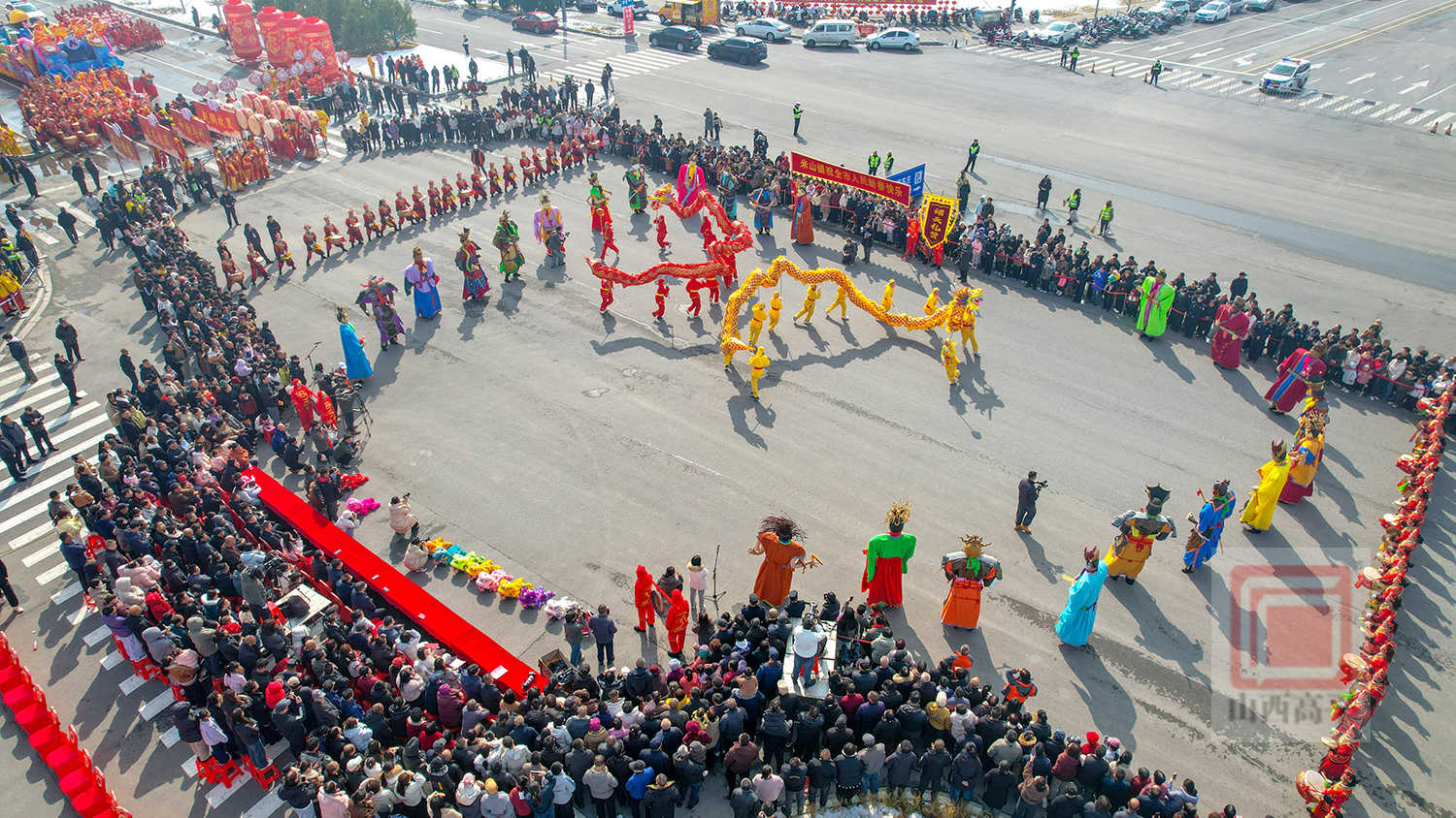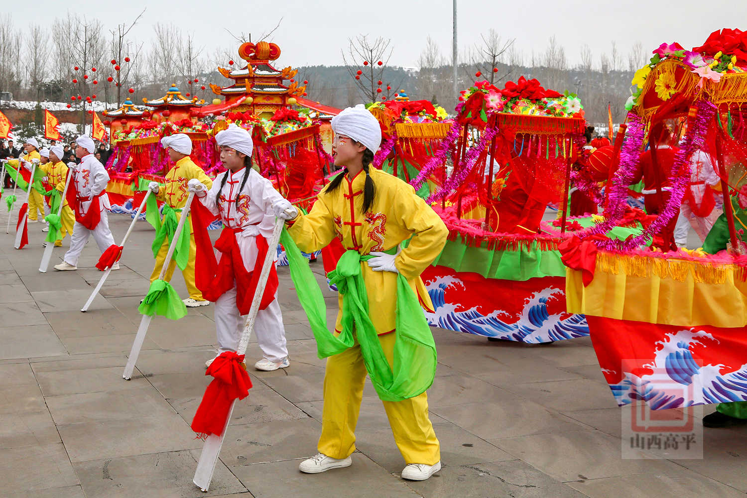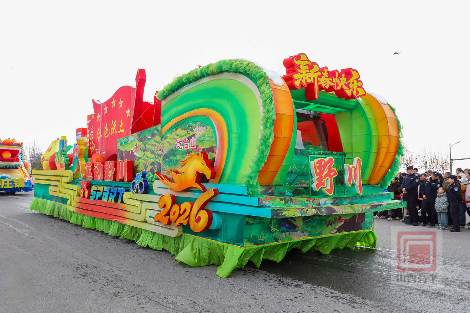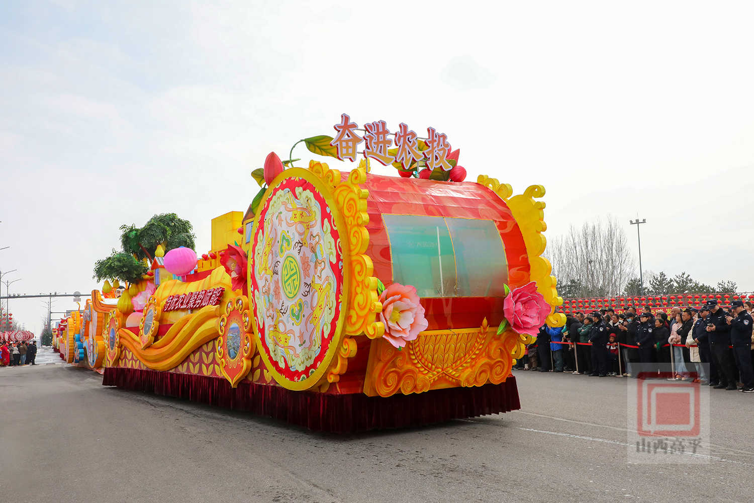20辆彩车以中国红与金黄为主色调,巧妙融合了生肖骏马、炎帝文化、古建文旅、产业振兴、城乡发展等元素,造型精美、设计独特,全方位展现了高平厚重的文化底蕴、蓬勃的产业活力与日新月异的城市变化。
