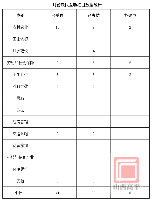 9月份政民互动栏目数据统计