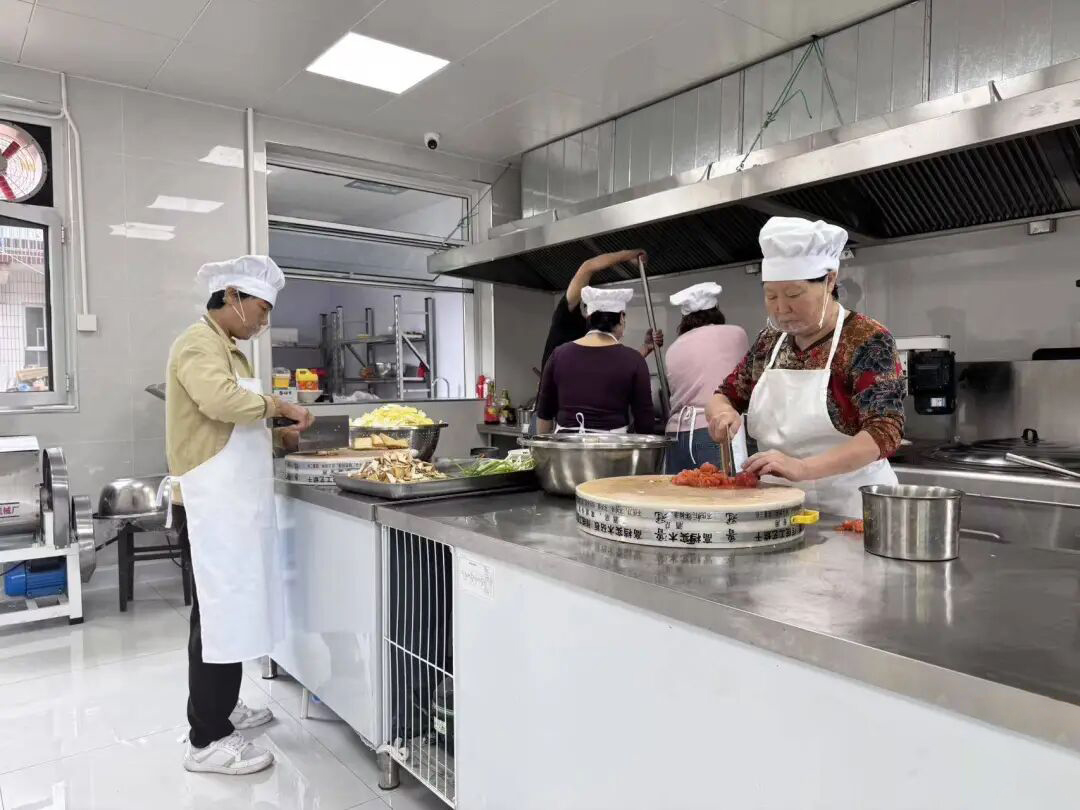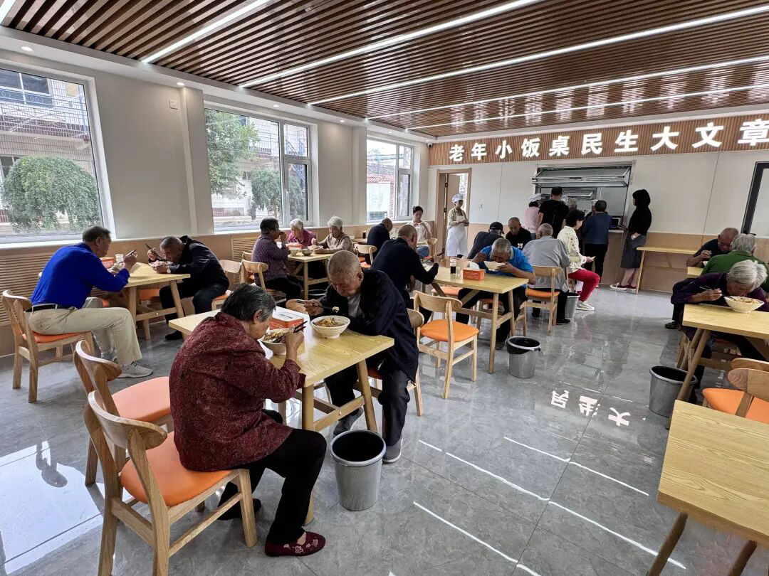 庞村村常住人口2000余人,60岁以上老人近500人,“吃饭难”是不少高龄、独居老人的共同困扰。去年,村里积极争取民政系统省级民生实事项目支持,建成省级标准化社区食堂,今年8月底正式投入使用,可容纳40人同时就餐,让更多老人在家门口吃上了热乎饭。