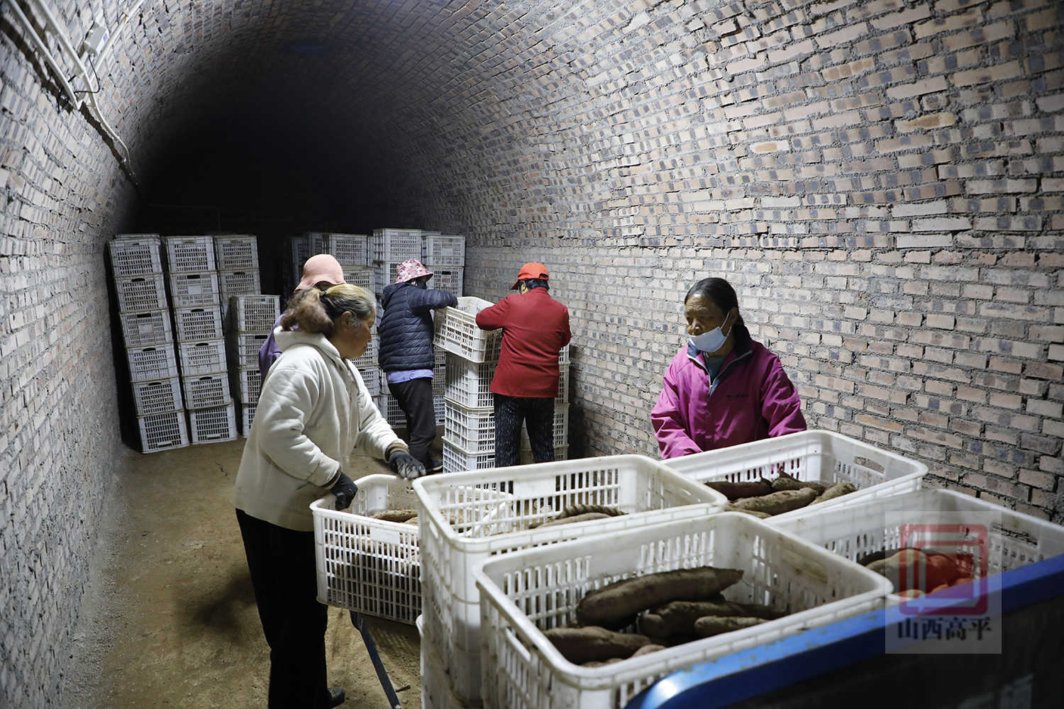 石末乡是我市富硒红薯的主要种植区,在该乡北凹村配套建设的智能化薯窖,不仅保障了红薯的品质,也延长了红薯的存储期和销售期。来到北凹村智能化薯窖,一排排支洞排列有序。各个支洞内,光线较暗,温度、湿度适宜。村民们正有条不紊地将刚收获的红薯进行分拣、装筐、码放、存储。