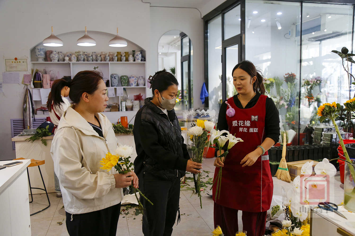 来到康乐东街一家花店,店内整齐摆放着新鲜的黄菊、白菊,淡雅的清香弥漫其间。花店工作人员正忙着修剪花枝、搭配花束、封装包装,不一会儿工夫,一束束寓意思念与缅怀的花束便制作完成。为满足市民多样化的祭扫需求,花店在传统单品种菊花的基础上,还推出了康乃馨、白百合与菊花搭配的组合花束,既庄重肃穆,又兼具温情,受到顾客青睐。