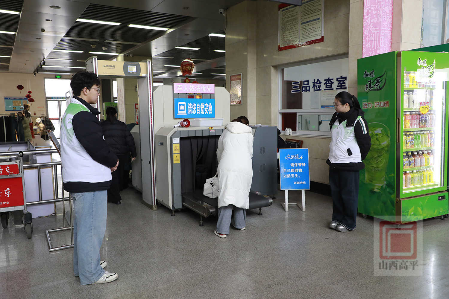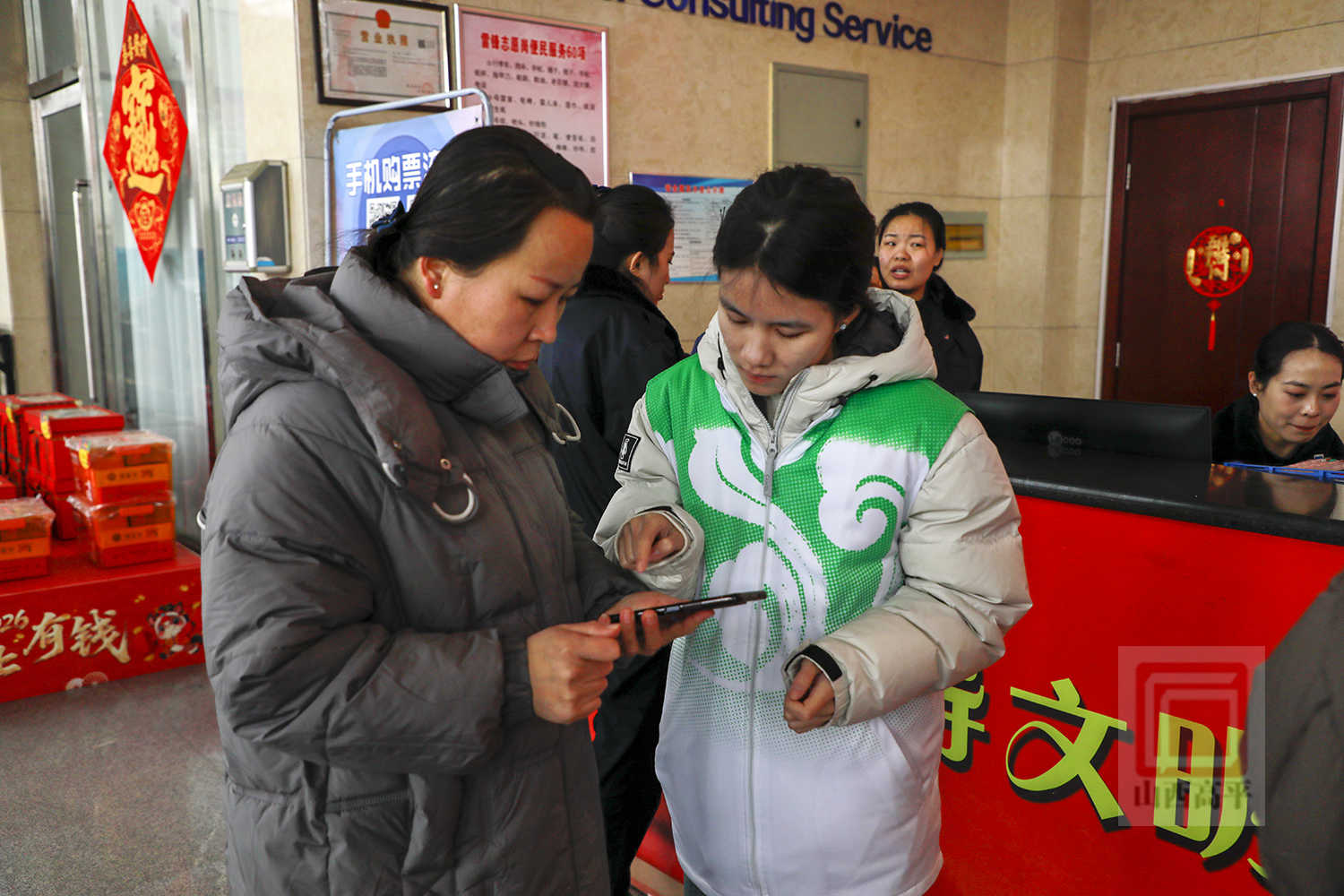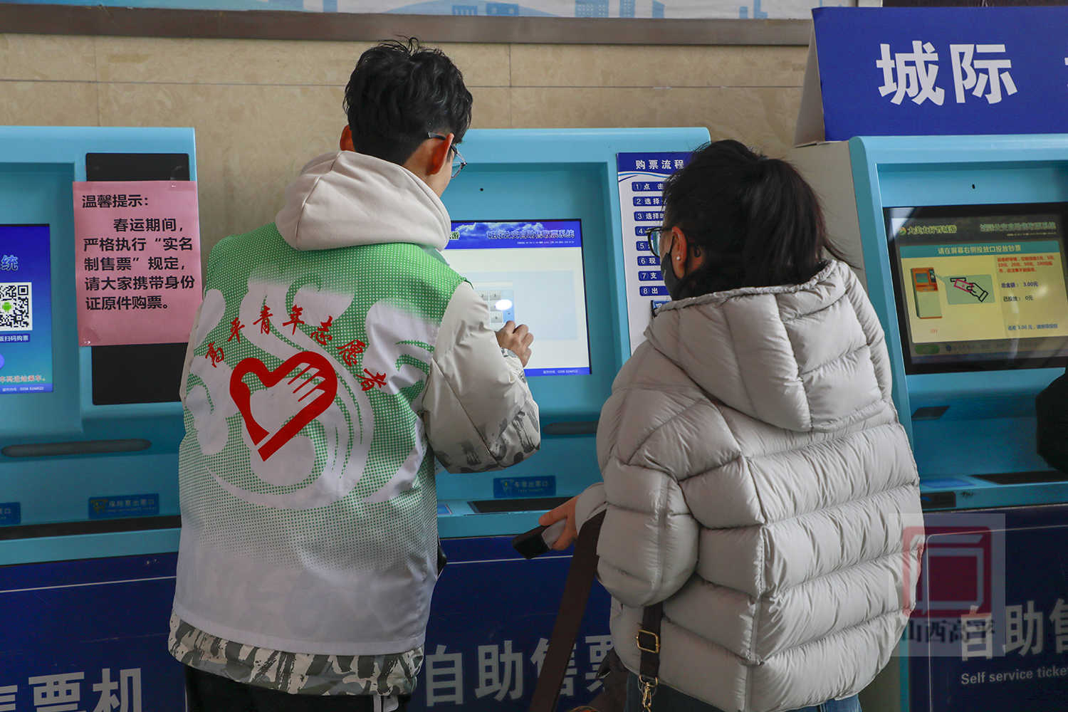 旅客刘瑞说:“一进车站就看到了这些穿着绿马甲的志愿者,他们又是帮着购票、又是帮着拿行李,让人心里特别踏实、特别温暖。”