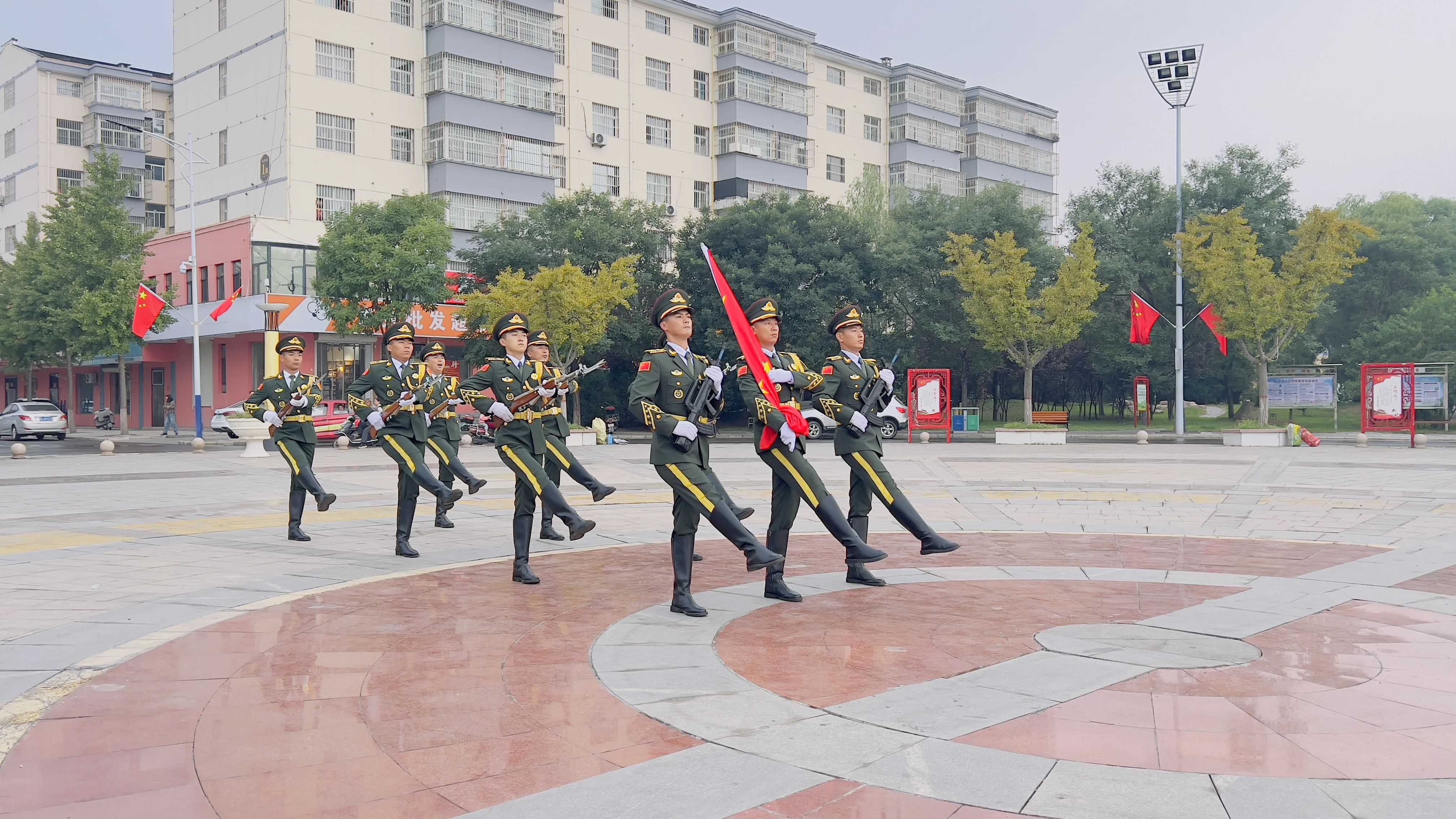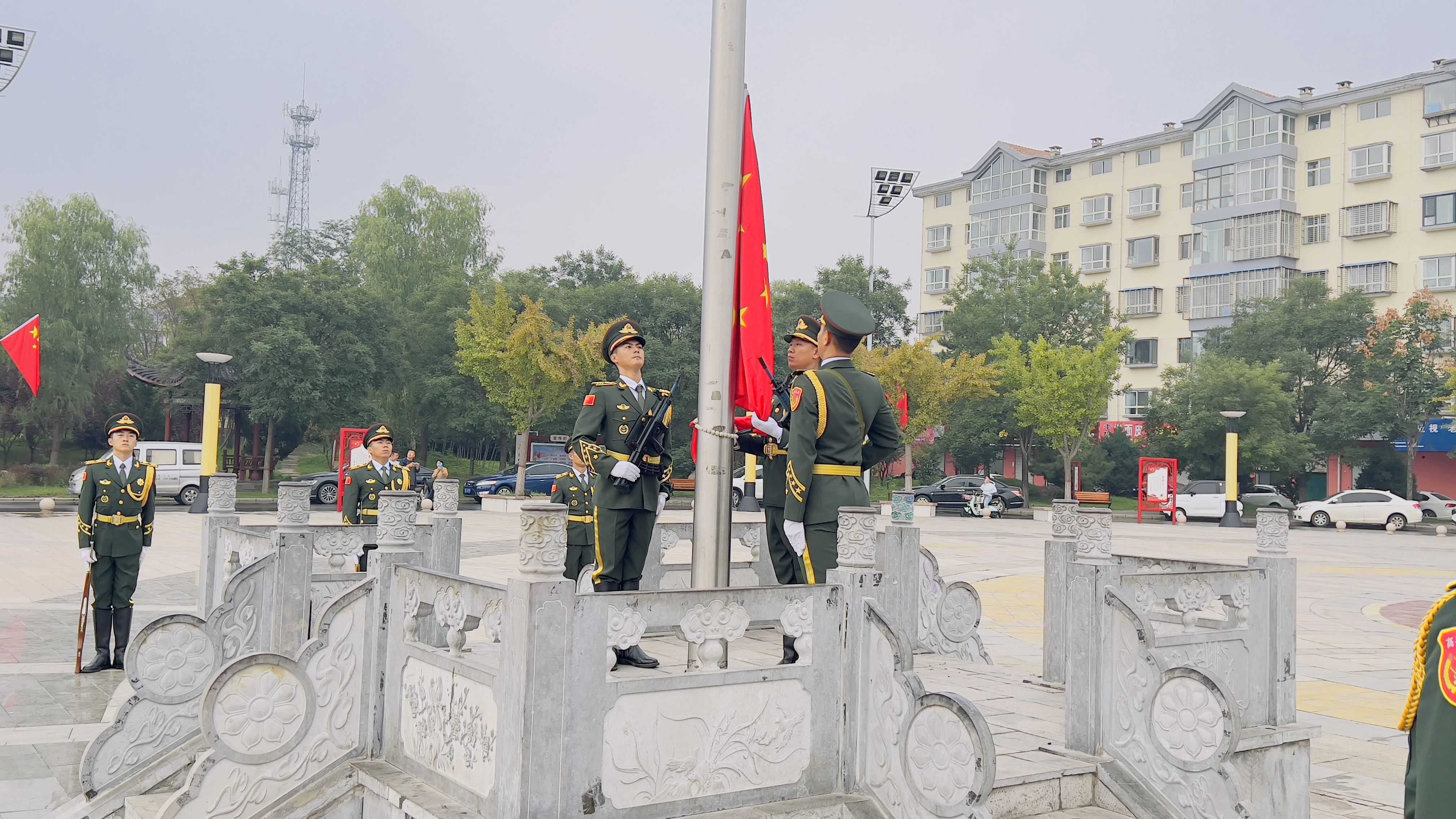 8时整,国旗护卫队迈着整齐、矫健的步伐,护卫国旗来到升旗台。全体人员精神振奋、全体肃立,深情地向冉冉升起的五星红旗行注目礼,深刻感受激荡人心的爱国情和感恩奋进的强国志,强化政治认同、涵养家国情怀、增强使命担当。