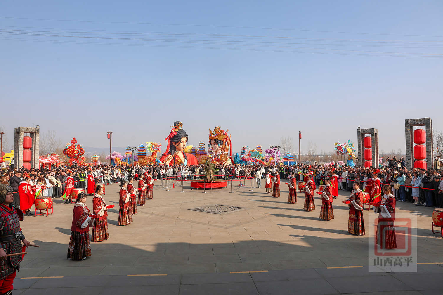 非遗社火在抬花轿、上党八音会、威风锣鼓等欢快的鼓点中拉开帷幕。游客们驻足观赏、体验,感受高平非遗魅力。在威亚演艺中,仙女散花、凤舞九天、飞马迎春等高空表演惊艳登场,营造出如梦似幻的仙侠氛围,为游客送上了新春的美好祝福。