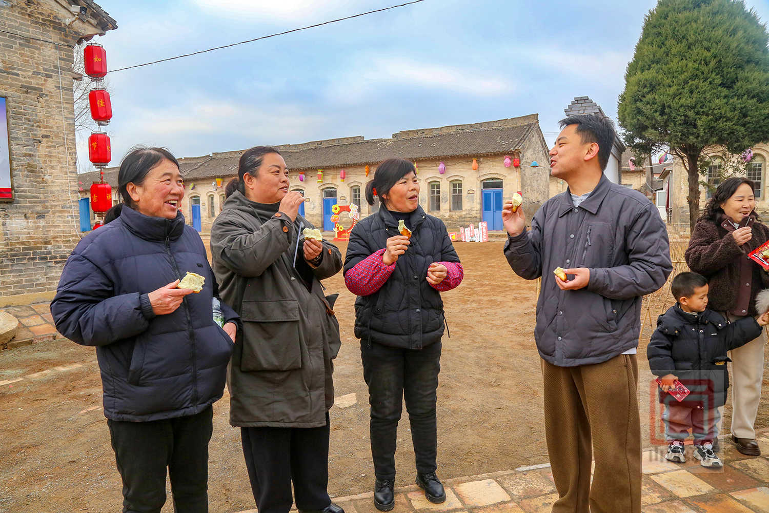 随后,游客们还来到国保单位嘉祥寺,赏古建、拓福马,祈福纳祥。在尝吉祥馍环节,村民与游客围着火炉烤花馍、尝花馍,感受传统年味。