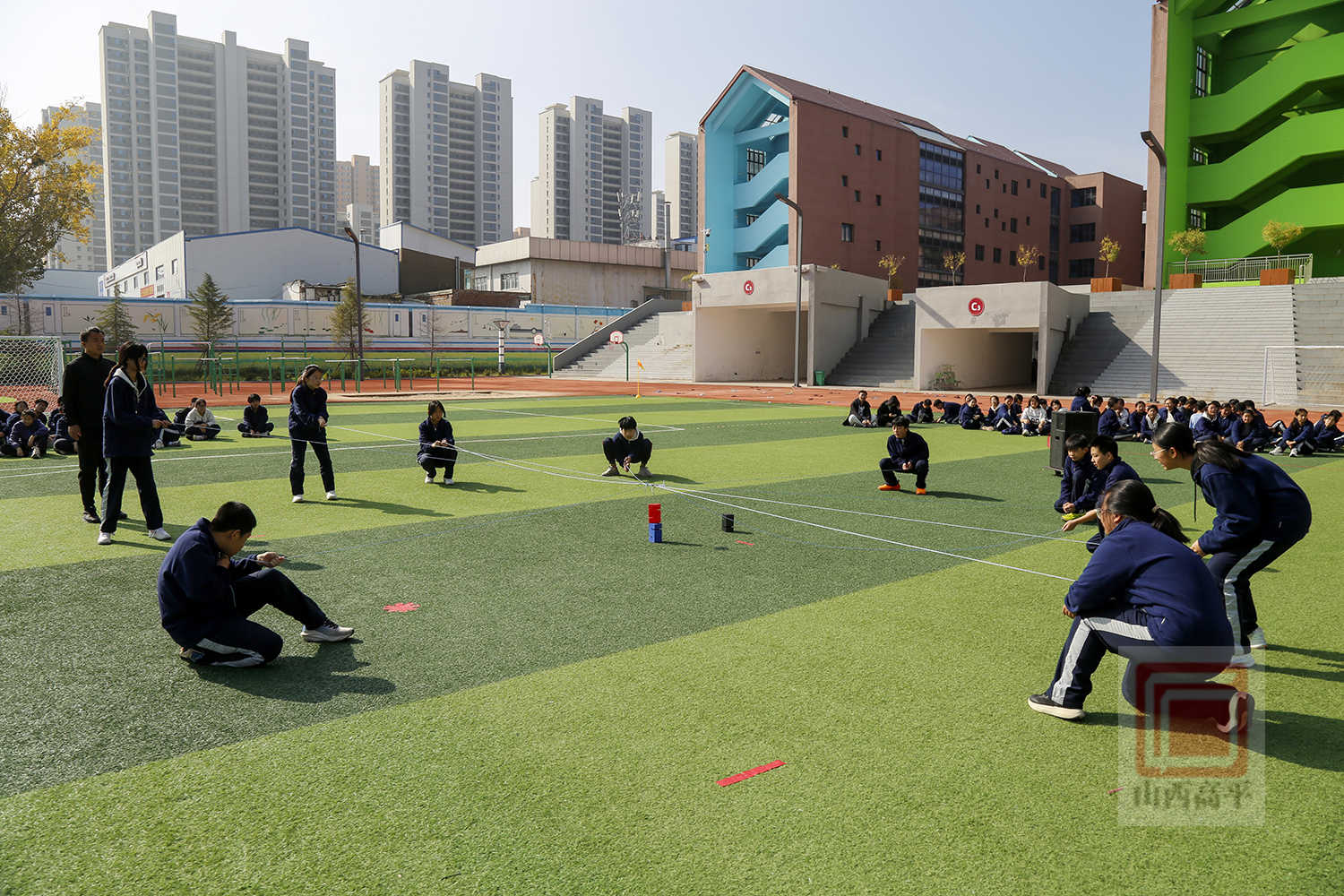 在高平七中的操场上,青春的气息同样扑面而来。随着动感的音乐声响起,四个方阵展开变换跳绳、跑道跳跃、腹撑核心力量与上肢力量的多样化场景练习,利用简单的场地设计丰富多样的动作,增强了运动的趣味性和参与度。随后进行的“合力建塔”和“球行万里”游戏,学生们配合默契,在实践中锻炼了团队协作、沟通技巧和情绪管理技能。