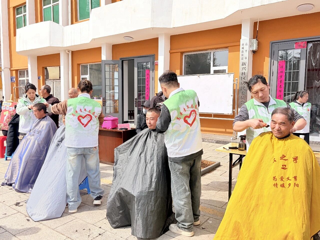 公益义剪区暖意浓浓,志愿者细致耐心、手法娴熟地为居民修剪发型,切实解决老年群体出行不便、不愿麻烦子女的难题。70多岁的独居老人牛举明修剪后精神焕发,对服务十分满意。