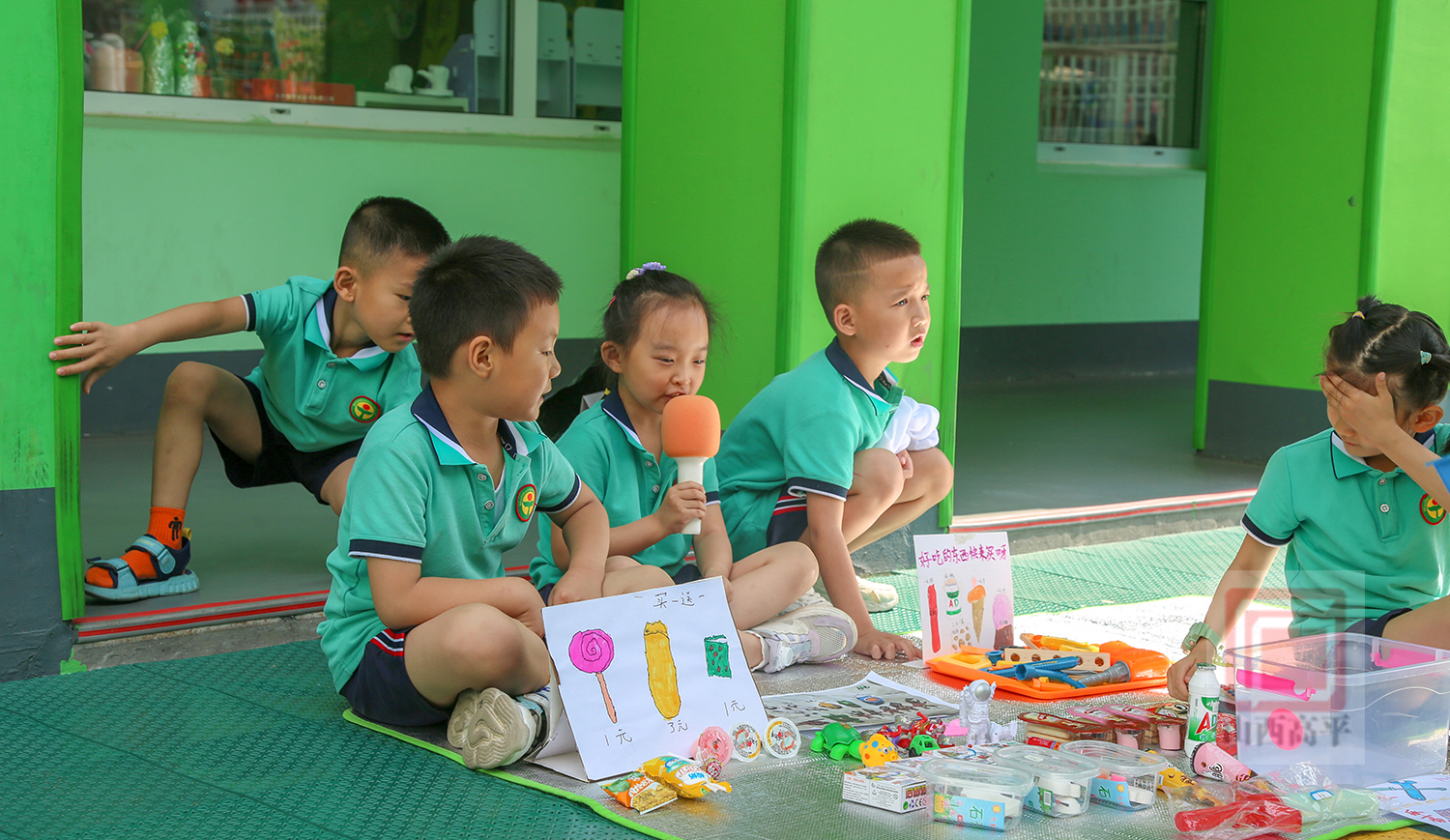 大胆介绍物品的功能玩法、价格,热闹的讨价还价,快乐认真的收钱算账……在每一个摊位前,“小摊主”们团结合作、卖力吆喝,小顾客们则拿出钱,购买着心仪的玩具、零食。