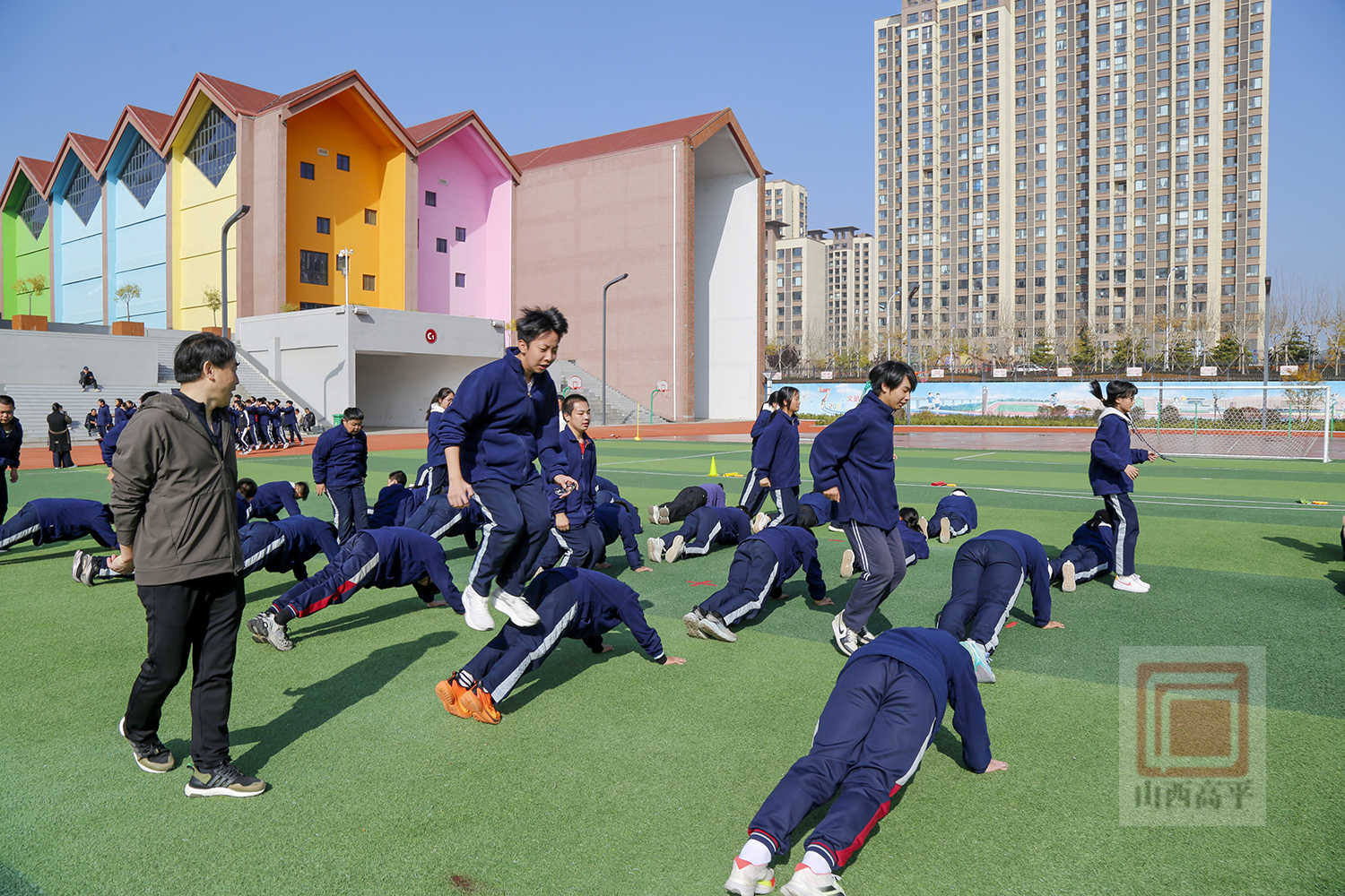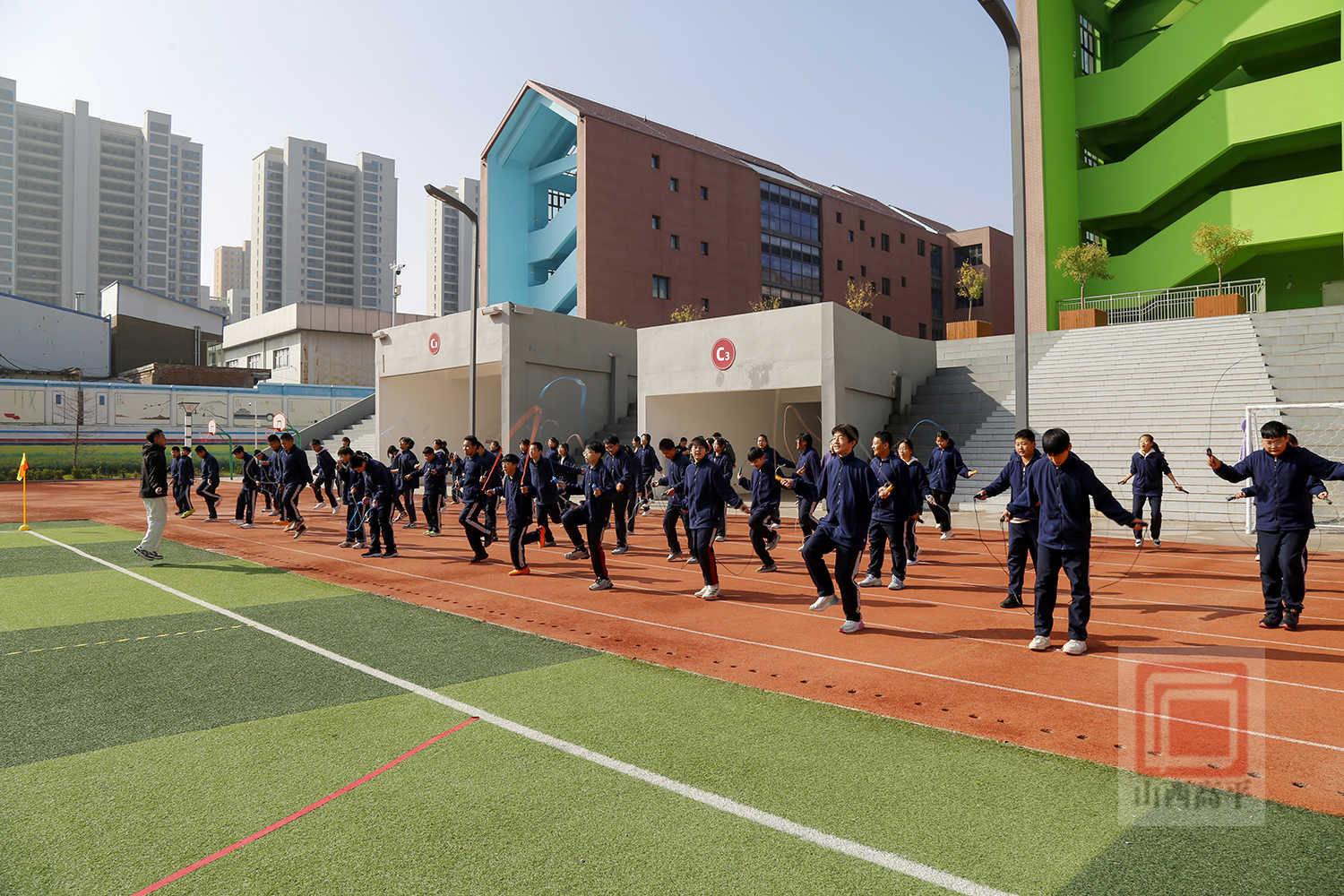 在高平七中的操场上,青春的气息同样扑面而来。随着动感的音乐声响起,四个方阵展开变换跳绳、跑道跳跃、腹撑核心力量与上肢力量的多样化场景练习,利用简单的场地设计丰富多样的动作,增强了运动的趣味性和参与度。随后进行的“合力建塔”和“球行万里”游戏,学生们配合默契,在实践中锻炼了团队协作、沟通技巧和情绪管理技能。