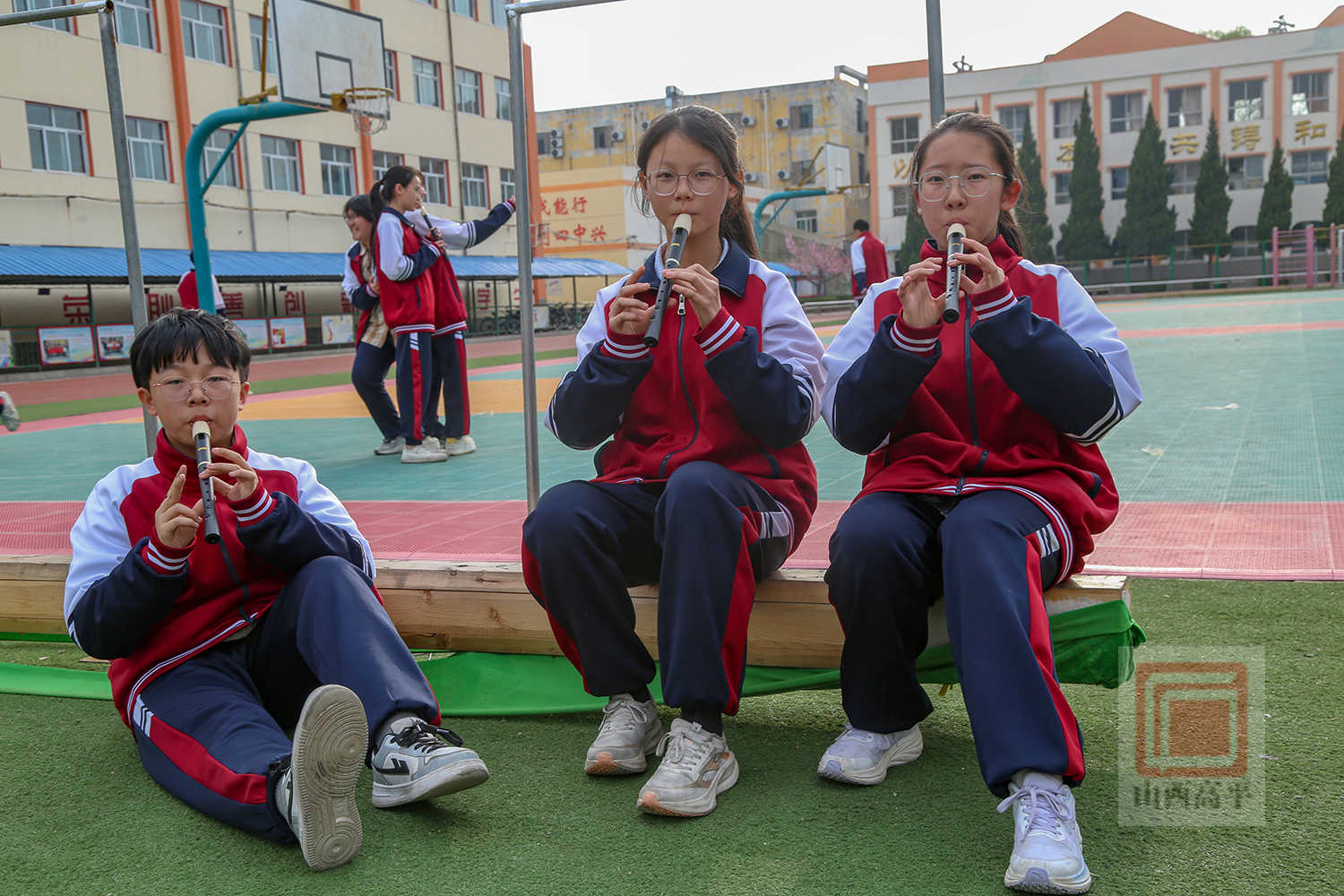 来到高平四中操场,袅袅笛声入耳,500余名学生整齐列队,手持竖笛,共同吹奏着耳熟能详的乐曲。大家神情专注、指法娴熟,将对音乐的热爱融入每一个音符。除了大课间的集体合奏,在课余时间,音乐教室、校园走廊也总能看到学生们三五成群围坐一起,交流技巧、轻声合奏,在悠扬旋律中沉浸式感受竖笛独有的韵律之美。