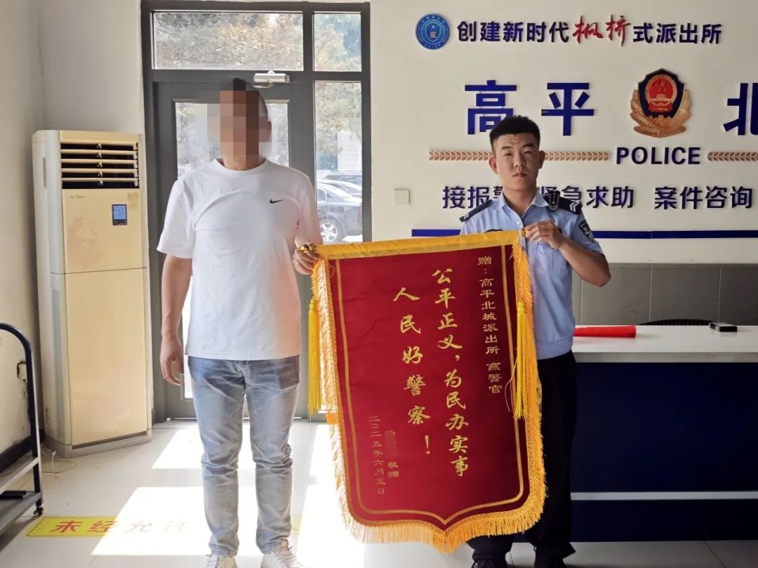“困难的时候,是你们给予了很大的帮助,这面锦旗是一点心意,一定要收下!”6月8日,杨先生到北城派出所送上一面锦旗,称赞北城派出所民警“公平正义,为民办实事,人民好警察!”。