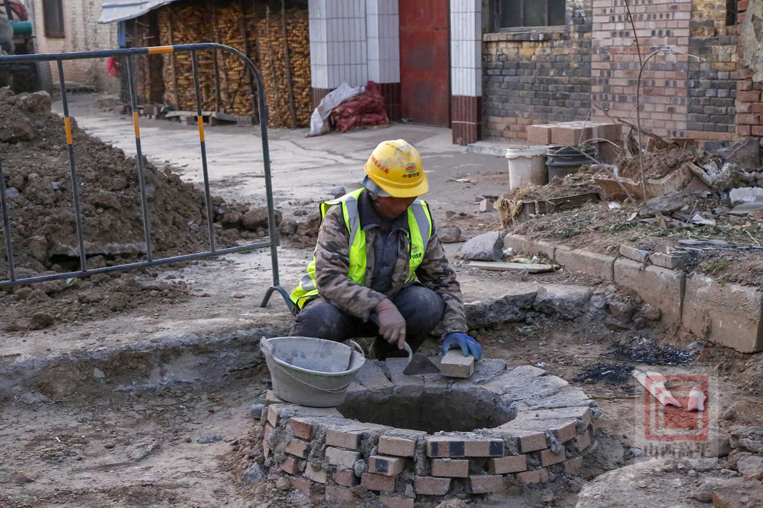 时值大雪节气,在原村乡原村村牧沟自然村供排污一体化施工现场,仍是一派如火如荼的繁忙景象。工人师傅们各司其职、分工协作,有条不紊地进行井砖堆砌、路面恢复等作业,确保工程按照既定时间节点顺利推进。