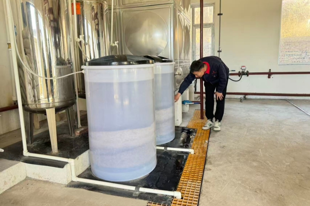 热力工作人员检查桶盐量是否充足