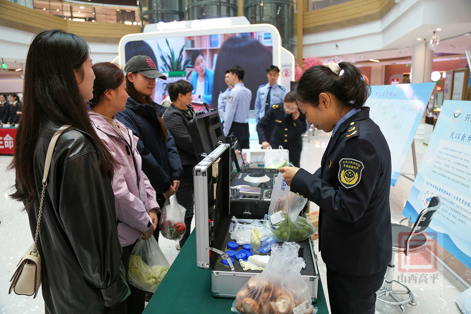 为增强活动的体验感和实效性,现场还设置了“你点我检”服务台,邀请群众参与互动。针对蔬菜、肉类、水果等日常食品,工作人员现场开展农残、添加剂等项目检测,让群众近距离了解食品安全快检流程,直观感受监管力度。
