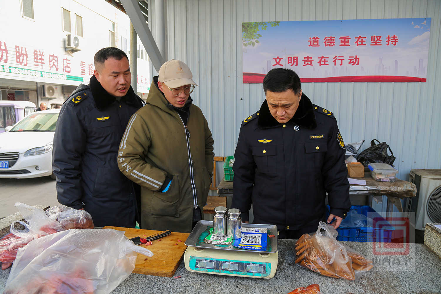 市市场监督管理局标准计量认证监督管理股股长韩文政介绍说:“春节期间,我们聚焦农贸市场、商场超市、居民区出入口流动摊点等消费密集区域进行排查检查,重点检查电子计价秤是否按期检定,计量是否准确、有无作弊情况,严厉打击缺斤短两、计量作弊等侵害消费者合法权益的违法行为,全力守护群众消费公平。”