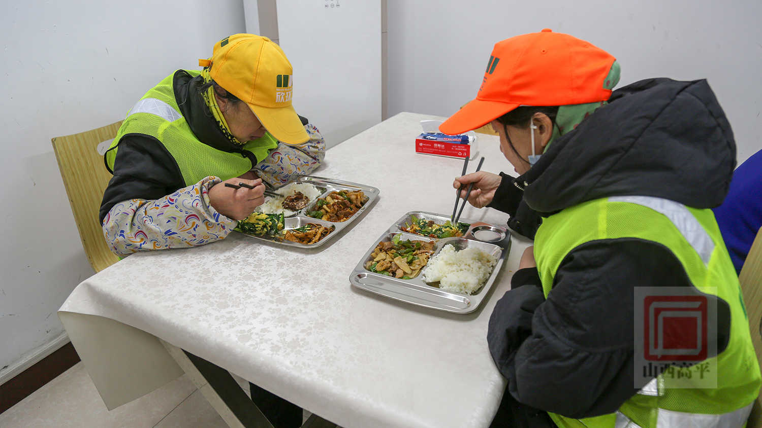 “虽然每天扫街又累又冷,但是能在这里吃上一顿免费的热乎饭,心里就感觉特别暖和。”环卫工人郭海霞吃着可口的饭菜,脸上满是笑容。对他们而言,这份午餐不仅是味蕾上的满足,更是一份被尊重、被惦念的感动。