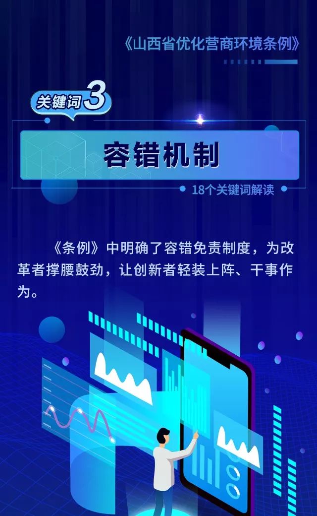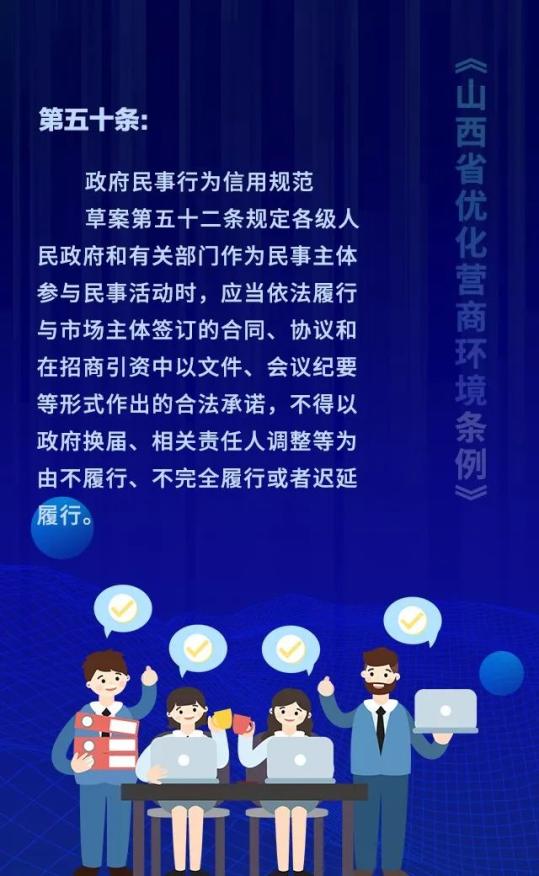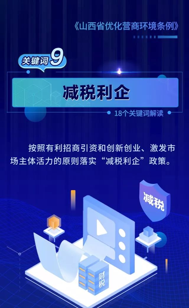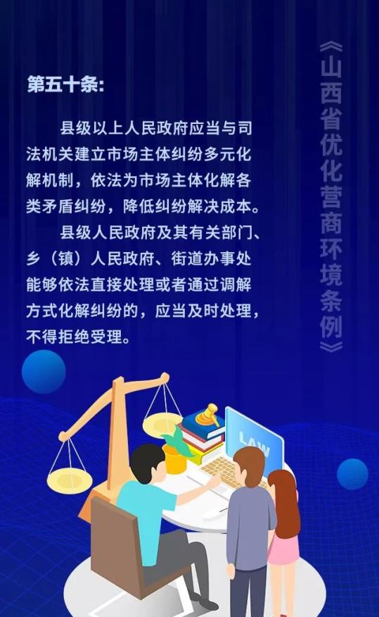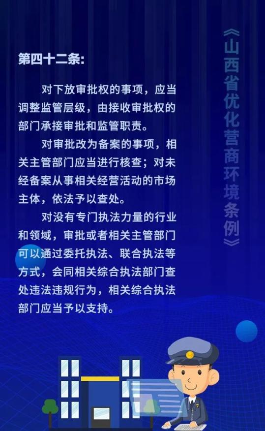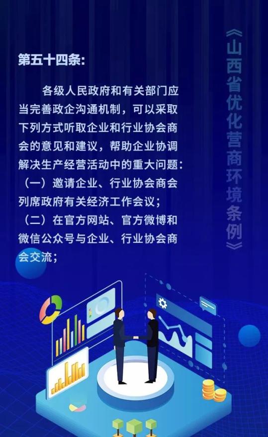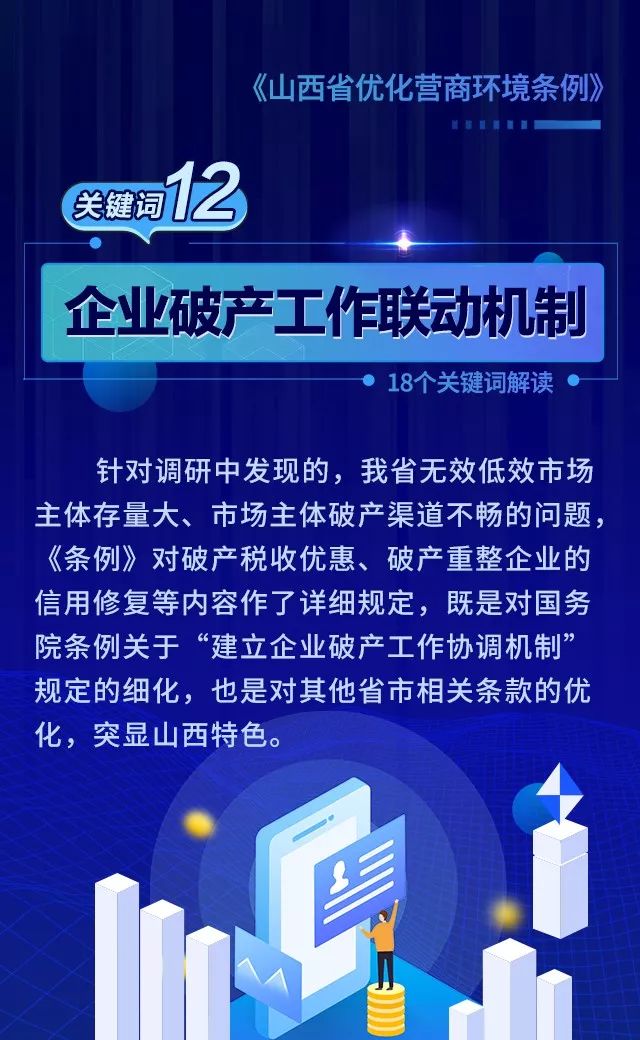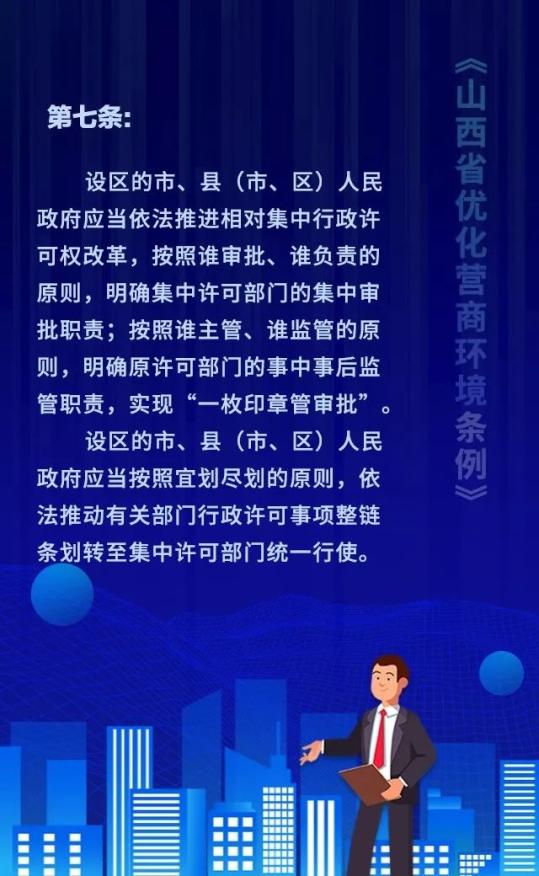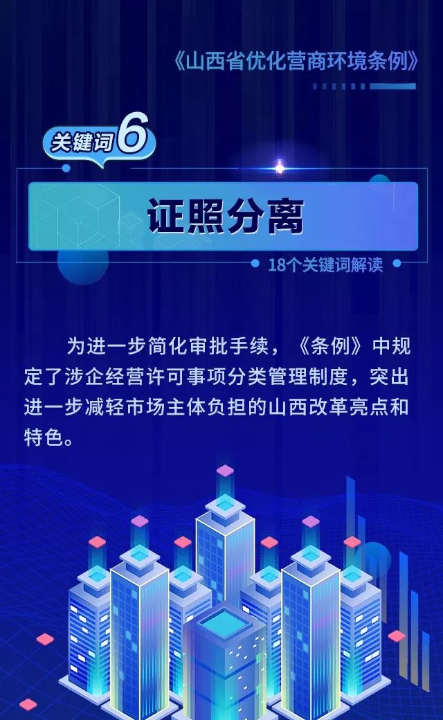 18个关键词!看懂《山西省优化营商环境条例》 来源: 发布时间:2020-07-16 【字体:小 大】 如果内容不能正常显示,请更换浏览器进行重试 第一章 总则第二章 优化审批第三章 市场环境第四章 政务服务第五章 监管执法第六章 法治保障 本页二维码 【打印正文】