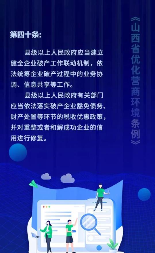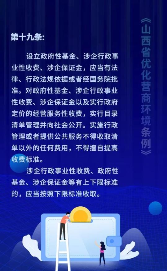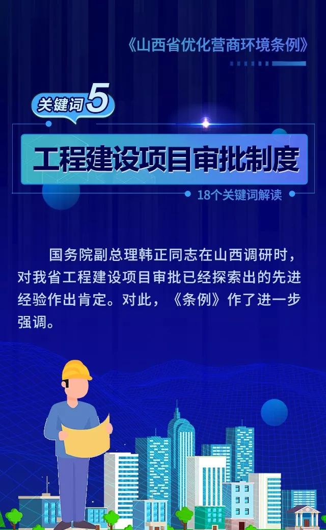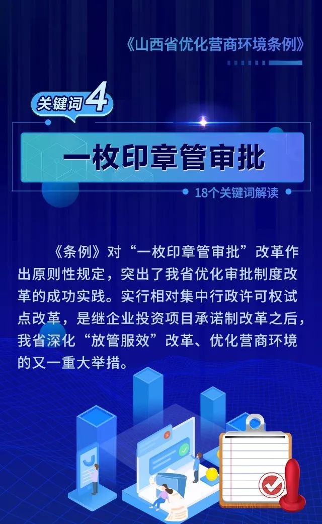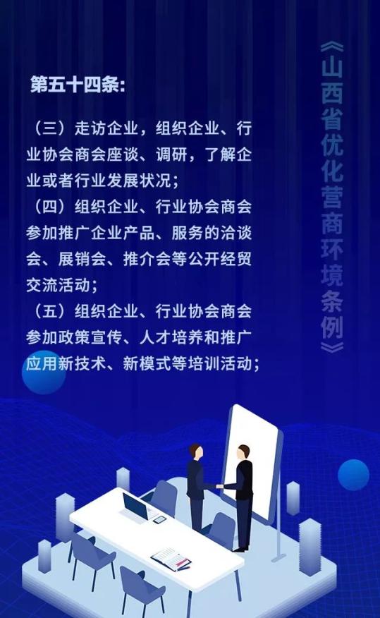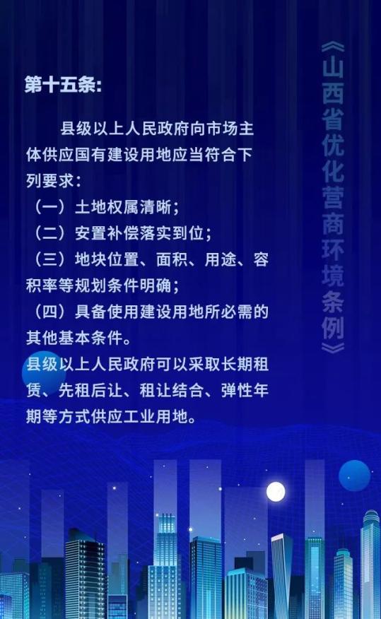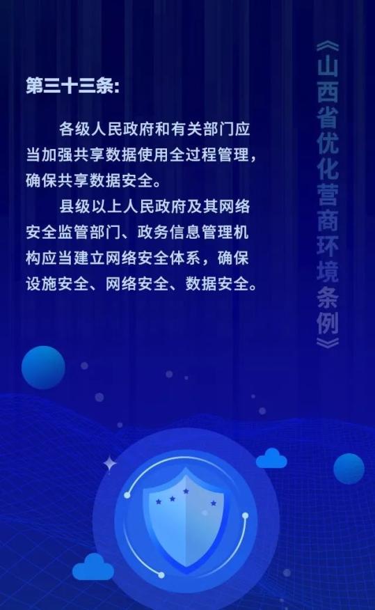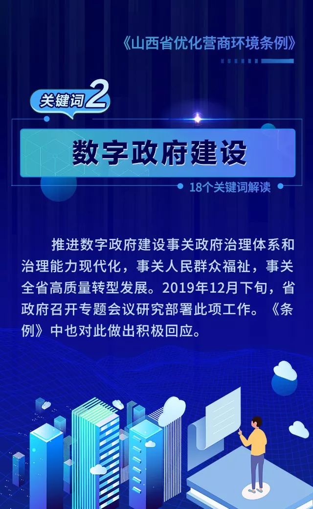 18个关键词!看懂《山西省优化营商环境条例》 来源: 发布时间:2020-07-16 【字体:小 大】 如果内容不能正常显示,请更换浏览器进行重试 第一章 总则第二章 优化审批第三章 市场环境第四章 政务服务第五章 监管执法第六章 法治保障 本页二维码 【打印正文】