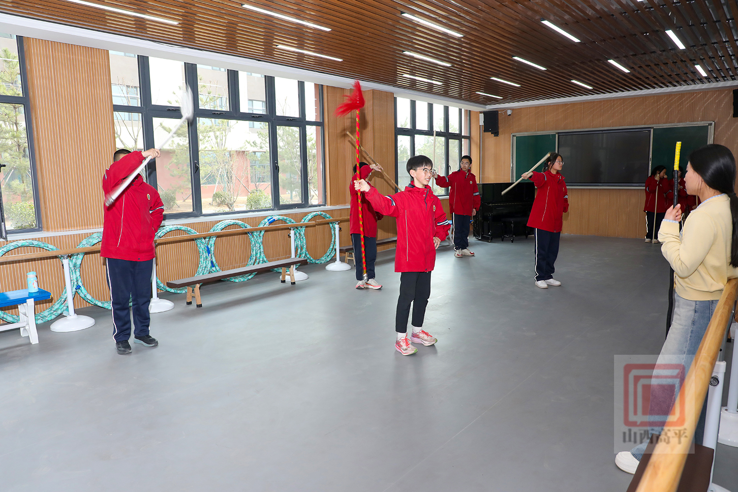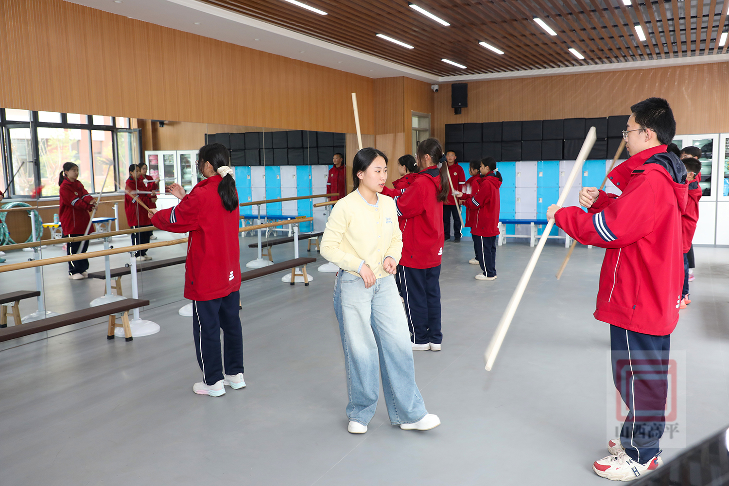 走进炎帝中学戏曲表演社团活动室,数杆银枪在学生们手中灵活转动、上下翻飞,一招一式有板有眼。在老师的悉心指导下,学生们全神贯注,灵活运用手腕力量,认真练习提枪花、劈喉花和后背花等把子功基础动作。从持枪姿势到发力要点,从动作规范到节奏把控,学生们逐渐掌握戏曲耍枪的表演要领。