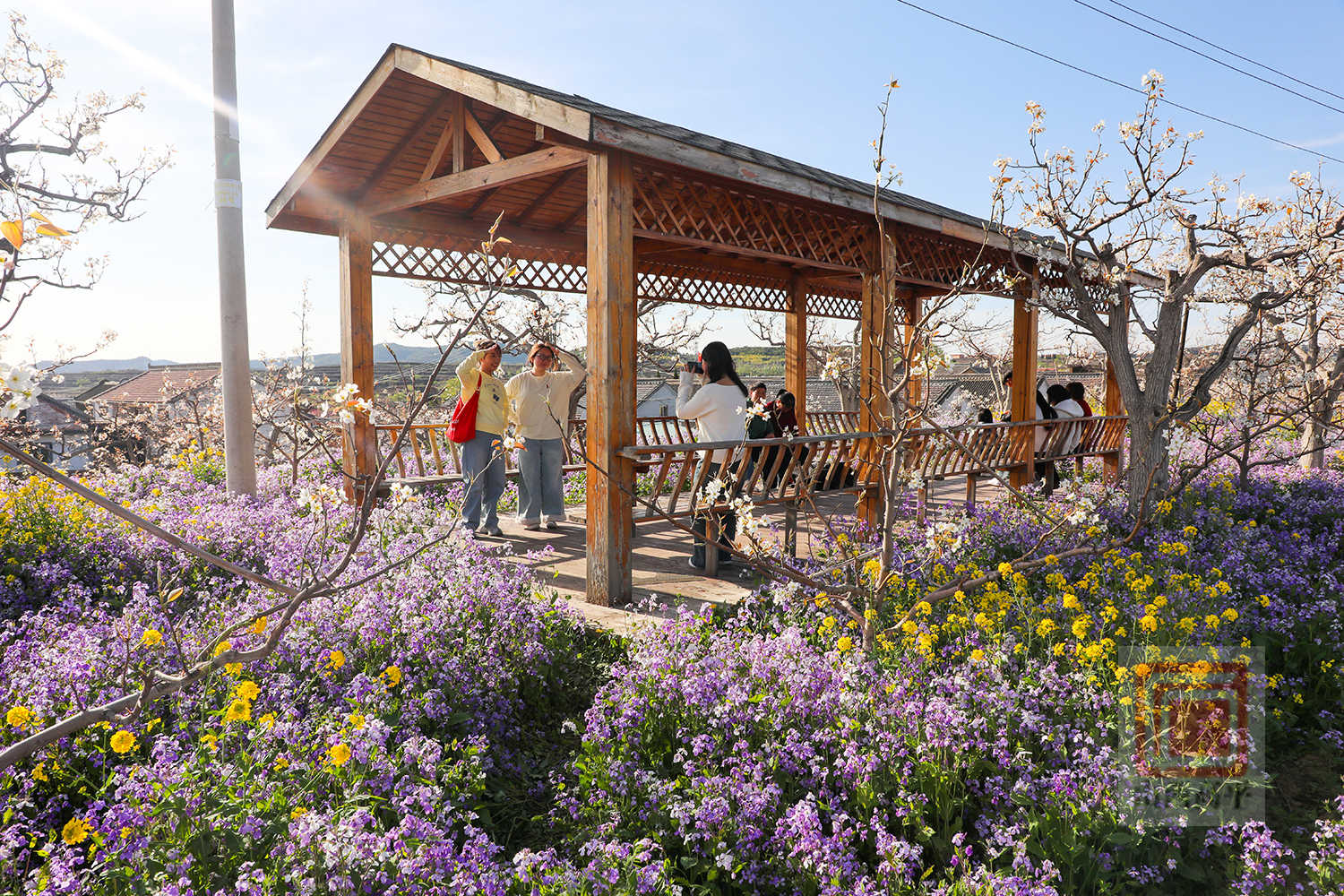 步入铁炉村,洁白的梨花缀满枝头,清新脱俗,与地上紫色的二月兰和黄色的油菜花交相辉映,构成了一幅绚烂多彩的春日画卷,美不胜收。微风拂过,花蕊颤动,阵阵花香扑面而来。游客们漫步在梨园小径,穿梭于花海之间,或驻足拍照定格美景,或俯身轻嗅花香,尽享芬芳烂漫的春日盛景。