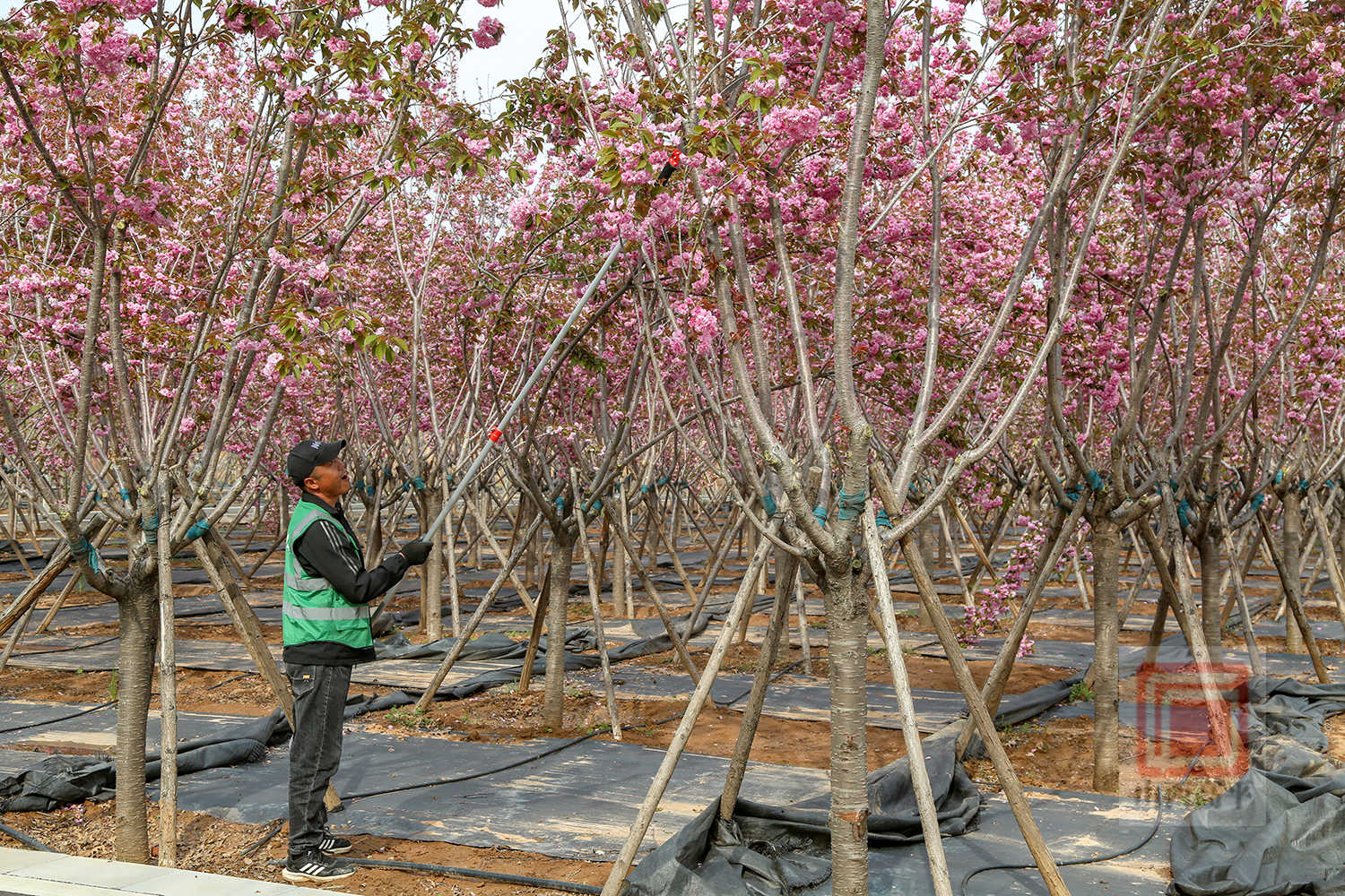 眼下正值春季苗木管护关键期,位于神农镇中庙村的太行花苗木花卉基地内,育苗工人抢抓春时,开展花卉炼苗、修剪、移栽等管护作业,掀起春忙热潮。
