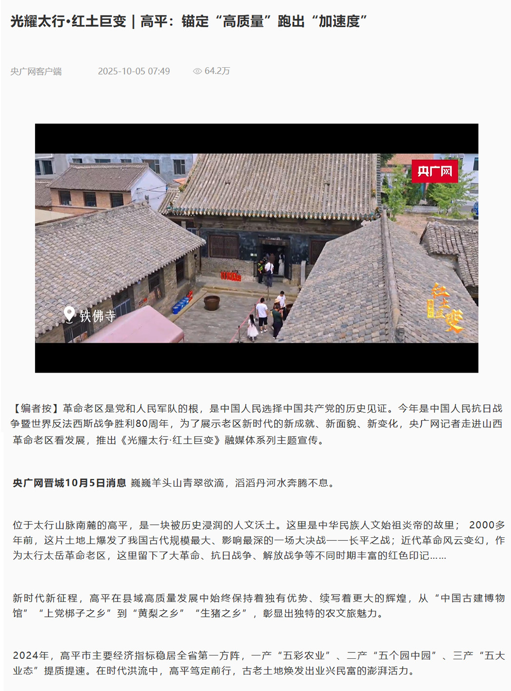 【央广网关注高平】光耀太行·红土巨变丨高平:锚定“高质量”跑出“加速度”