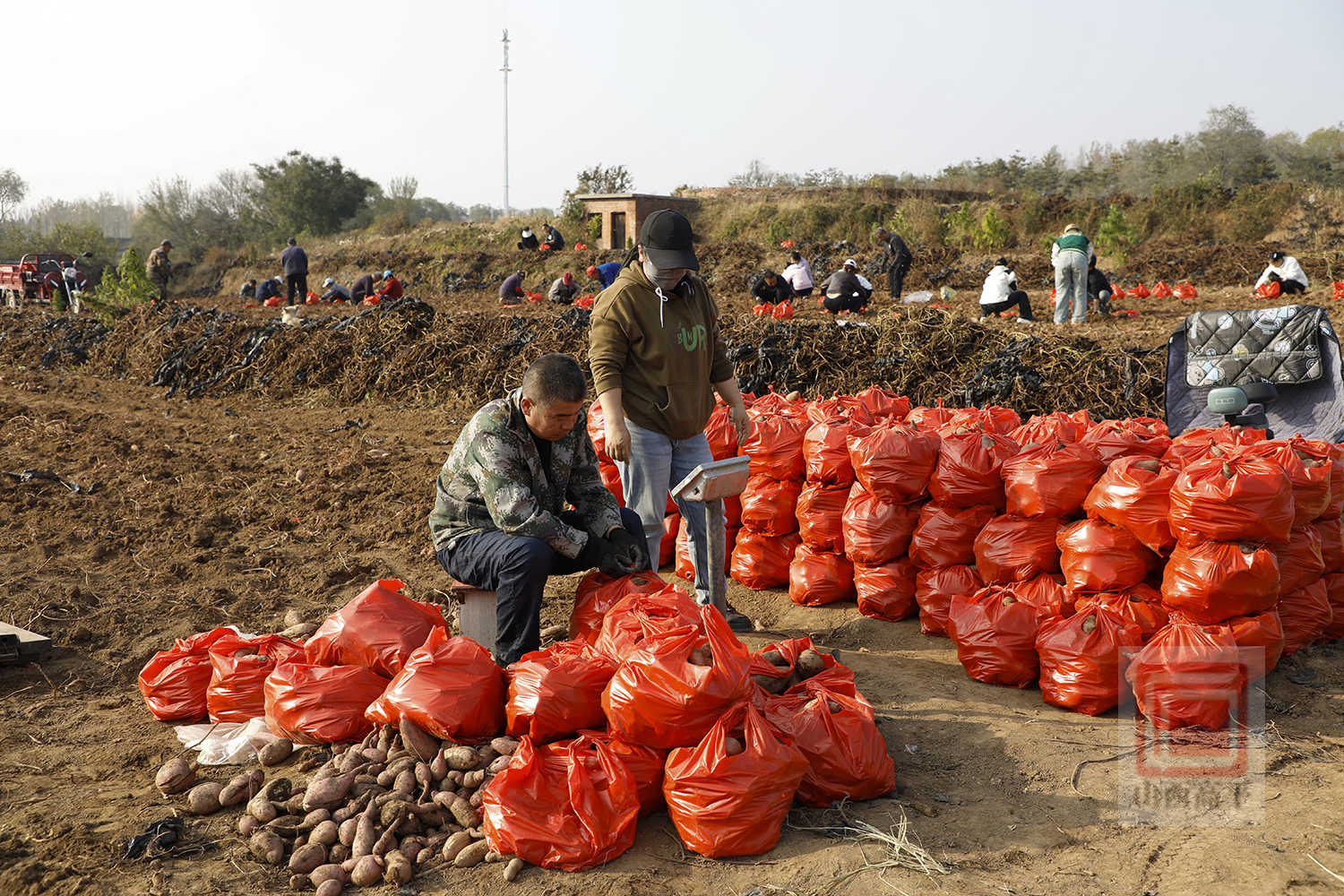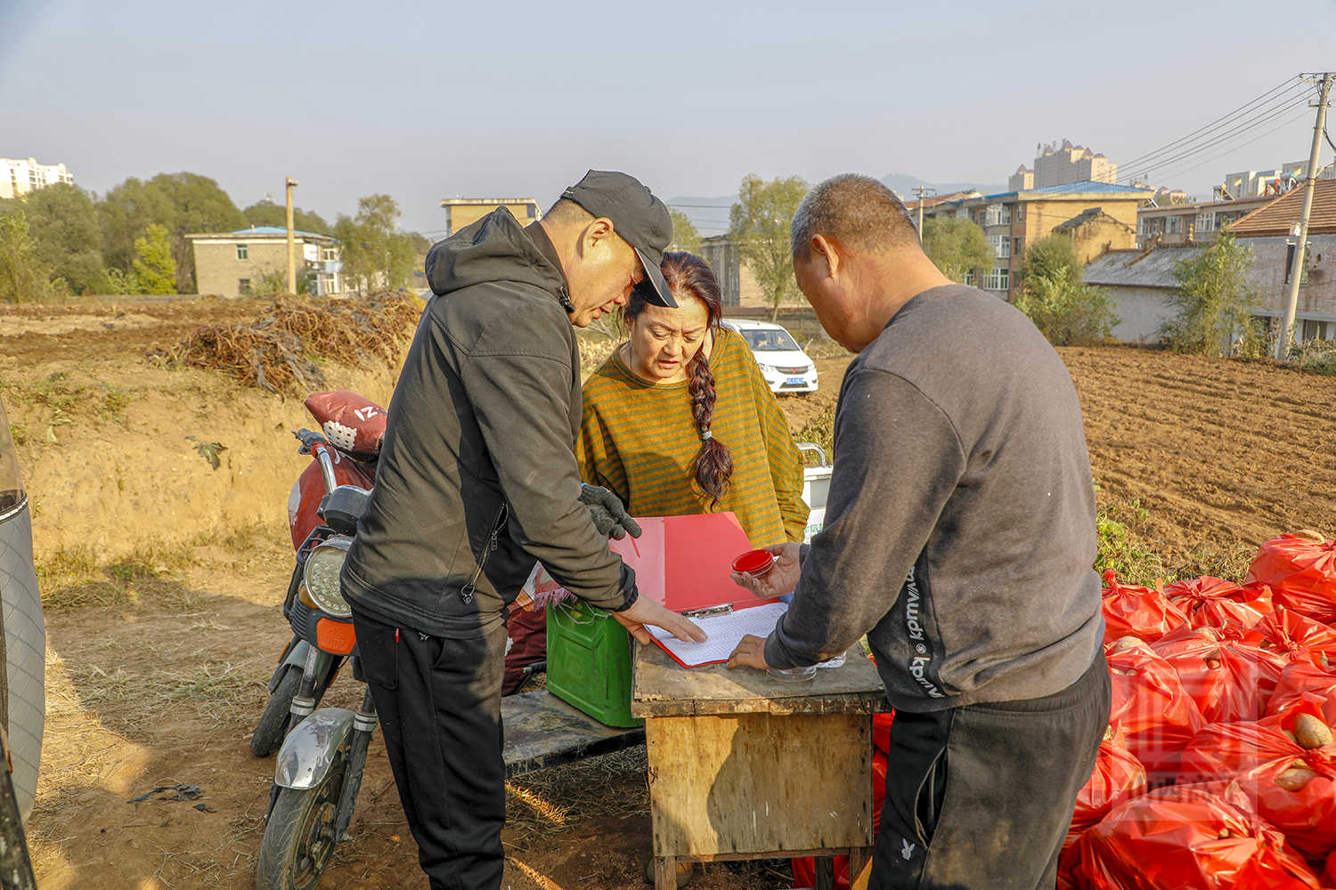 与此同时,在另一边的红薯分发点,闻讯而来的居民在工作人员的有序引导下,依次登记、领取红薯,忙碌的秋收场景与居民的幸福笑脸勾勒出秋日最美的画卷。