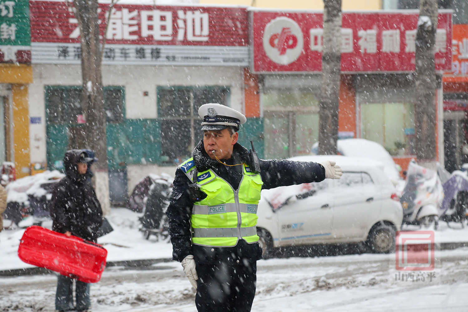 公安交警坚守一线,在主要路口、易滑路段加强出行护航和指挥疏导,在风雪中筑起一道可靠的安全线,成为雪中最醒目的“路标”。