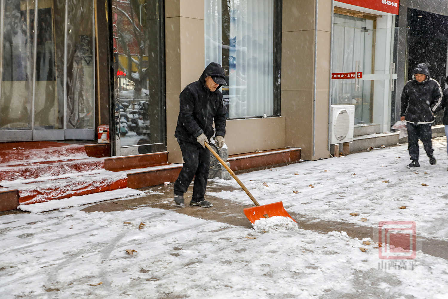 党员干部、志愿者、沿街商户也纷纷加入除雪行列,拿起铁锹、扫帚等工具清扫道路积雪,为大家开辟出安全、畅通的出行道路。