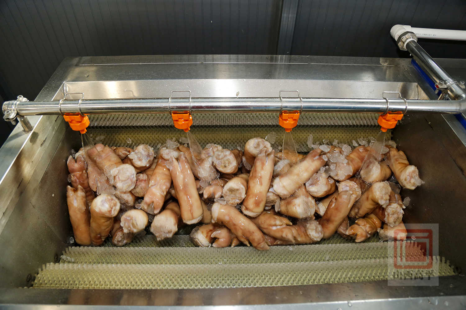 经过10个月的紧张建设,日前,寺庄村熟肉标准化加工厂项目顺利投产。来到加工车间,自动化流水线高效运转,村民们身着统一服装,操控智能化设备,在生产线上按照传统工艺卤制猪蹄。精选的猪蹄经清洗、汆水后,搭配秘制配料入锅慢煮,再经汆卤、冷却、真空包装、灭菌等环节,最终封装完毕,发往各地市场。