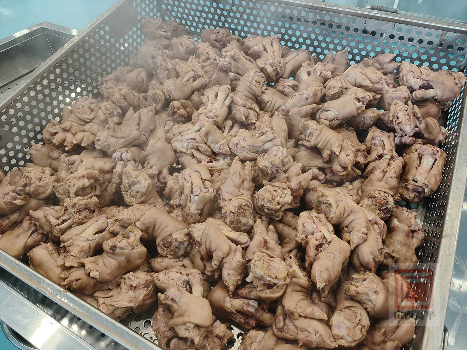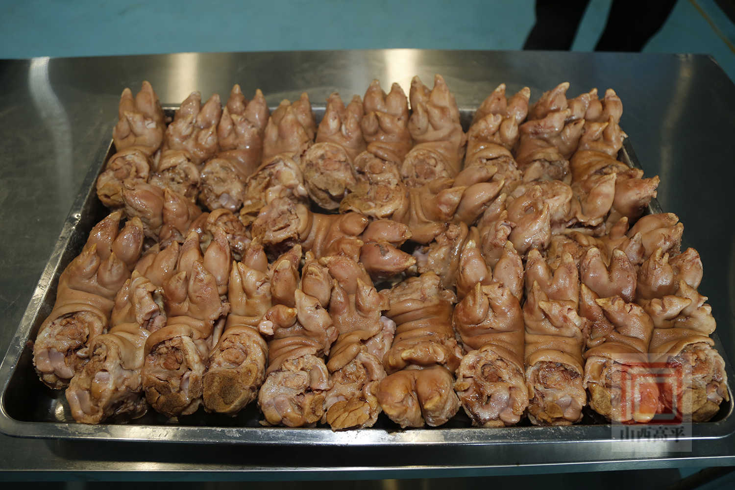 生产车间主任董习琴介绍说:“寺庄猪蹄是两锅汤,先煮后卤,煮12个小时,汆卤5分钟。我们只选肉大骨头小的猪前蹄,拿到猪蹄后先烧黑,洗成棕黄色,再用冰糖炒色,一滴酱油都不放,具有热食软嫩脱骨、凉食筋道够味的独特口感。”
