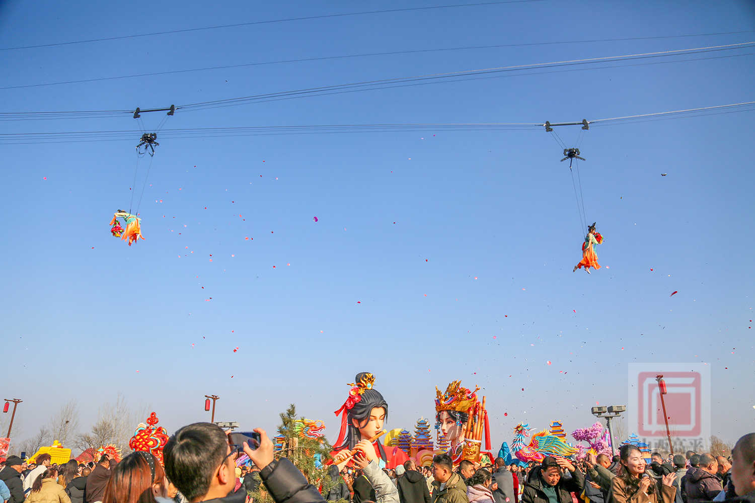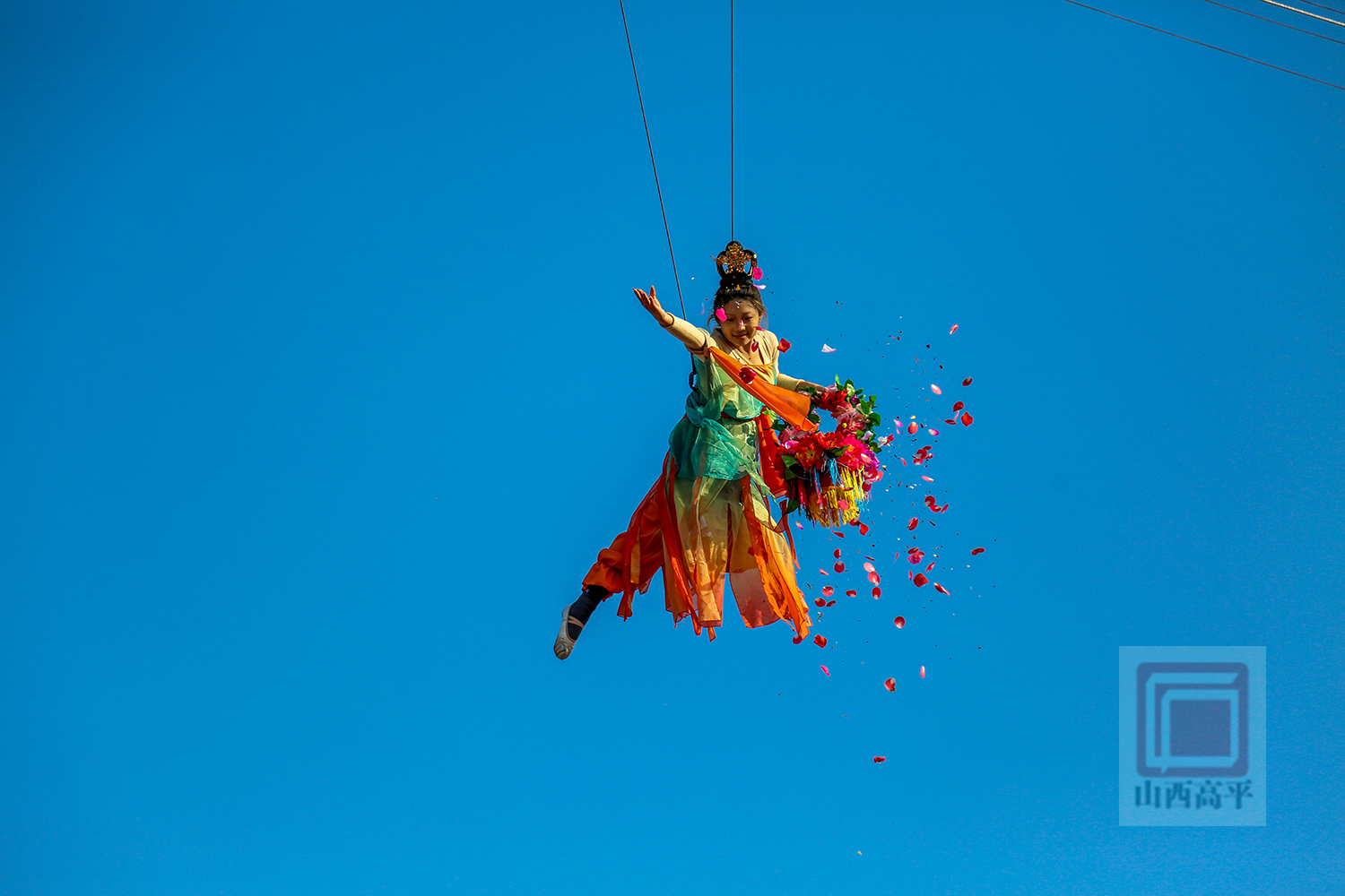 非遗社火在抬花轿、上党八音会、威风锣鼓等欢快的鼓点中拉开帷幕。游客们驻足观赏、体验,感受高平非遗魅力。在威亚演艺中,仙女散花、凤舞九天、飞马迎春等高空表演惊艳登场,营造出如梦似幻的仙侠氛围,为游客送上了新春的美好祝福。