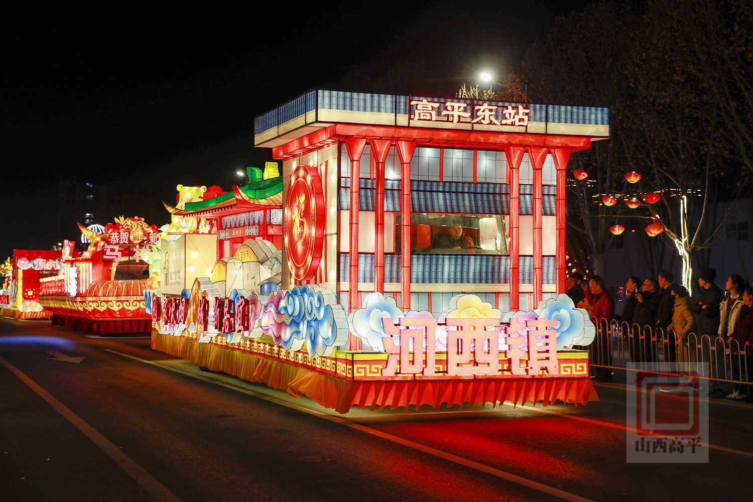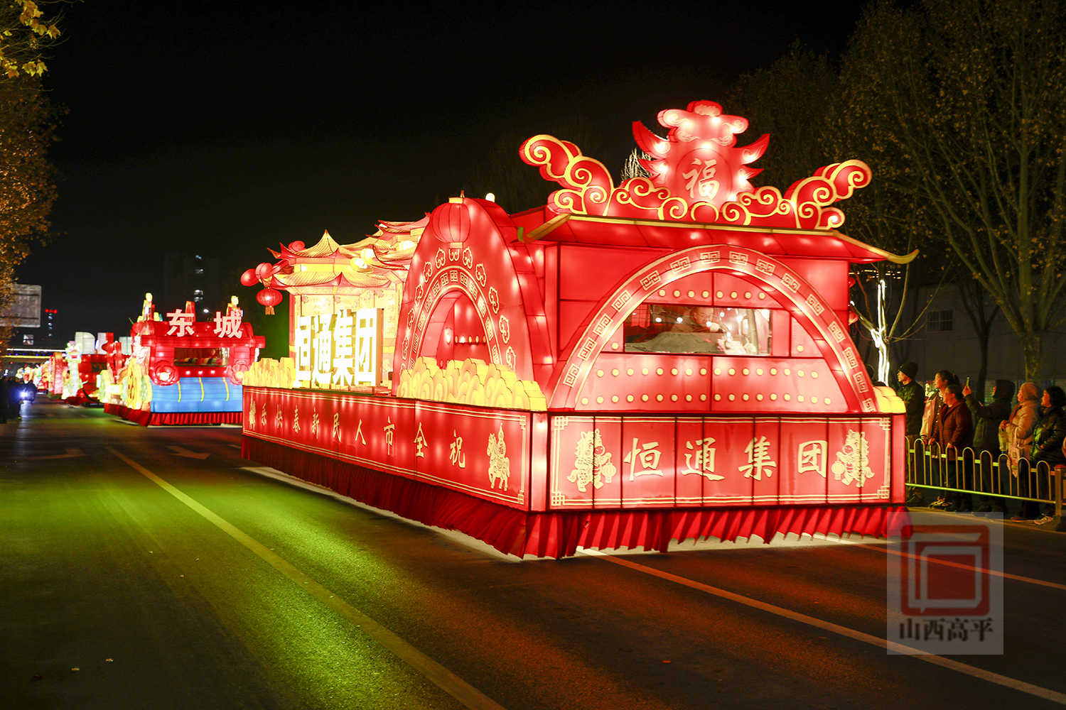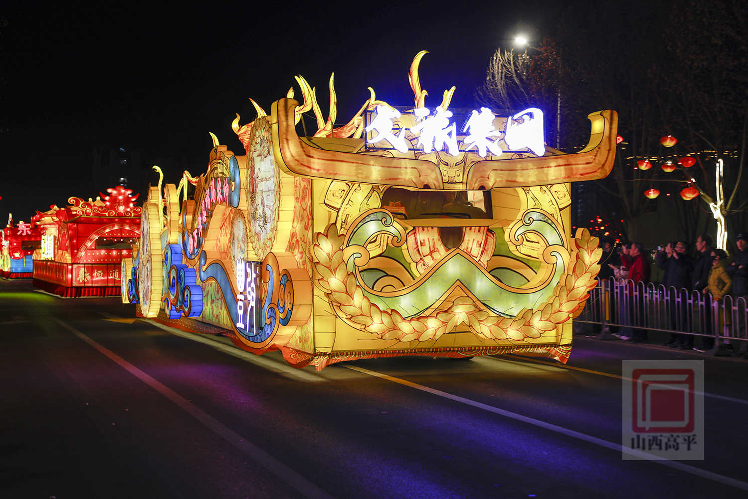 晚上7点30分,伴随着欢快的旋律,代表科兴集团、国投集团、农投集团、文旅集团、恒通集团5家重点企业及全市15个乡镇(街道)的20辆彩车,从高平东站缓缓出发,沿炎帝大道向市区行进。20辆彩车以中国红与金黄为主色调,巧妙融合了生肖骏马、炎帝文化、古建文旅、产业振兴、城乡发展等元素,造型精美、设计独特,全方位展现了高平厚重的文化底蕴、蓬勃的产业活力与日新月异的城市变化。