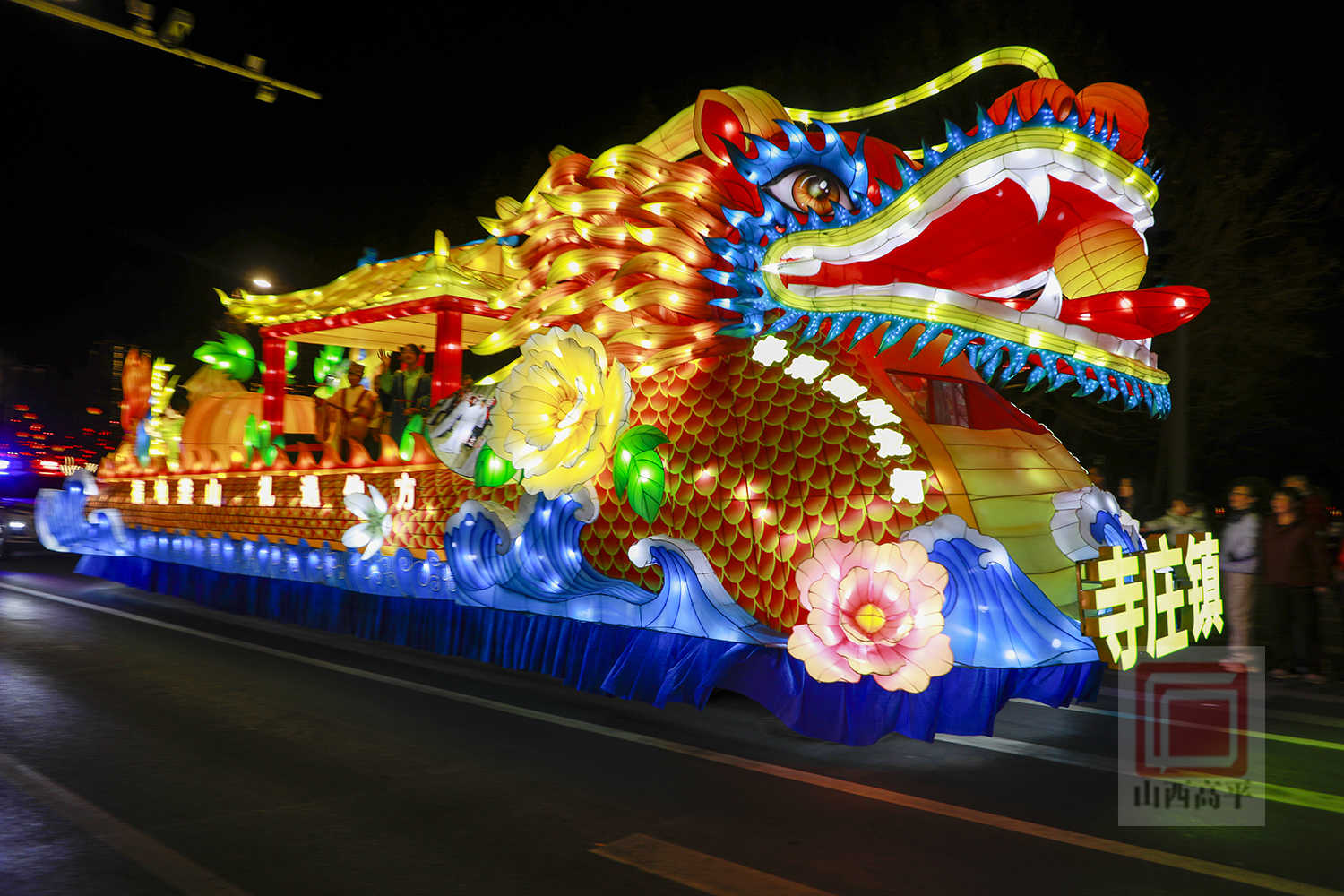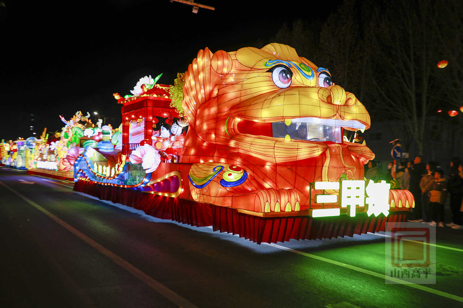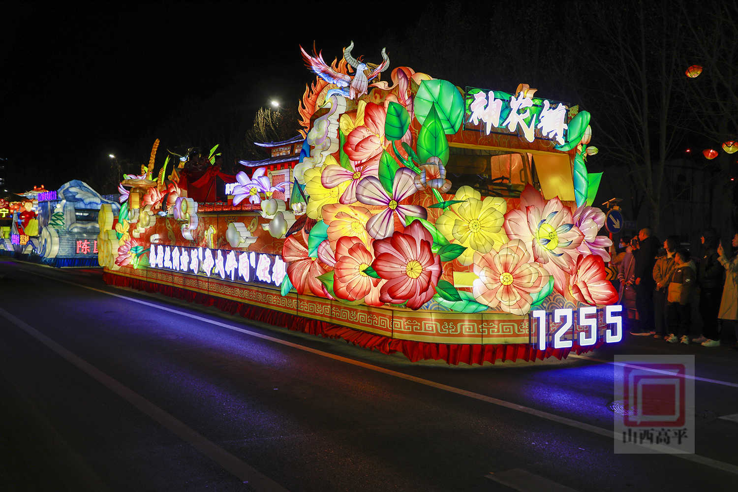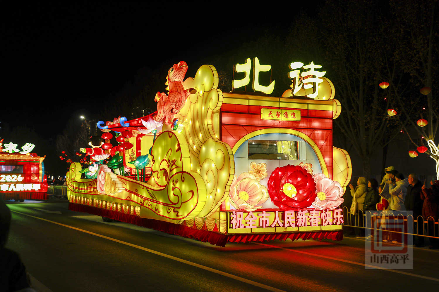 市民秦皓奇激动地说:“我去年就看过彩车巡游,今天得知彩车巡游晚上开始,我就早早过来等候,每辆彩车都具有高平特色,非常好看,年味十足。”