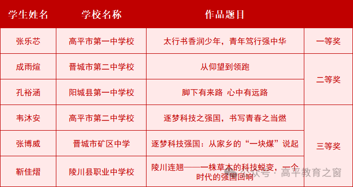 优秀!我市多名学子在晋城市青少年爱国主义读书教育演讲比赛中斩获佳绩