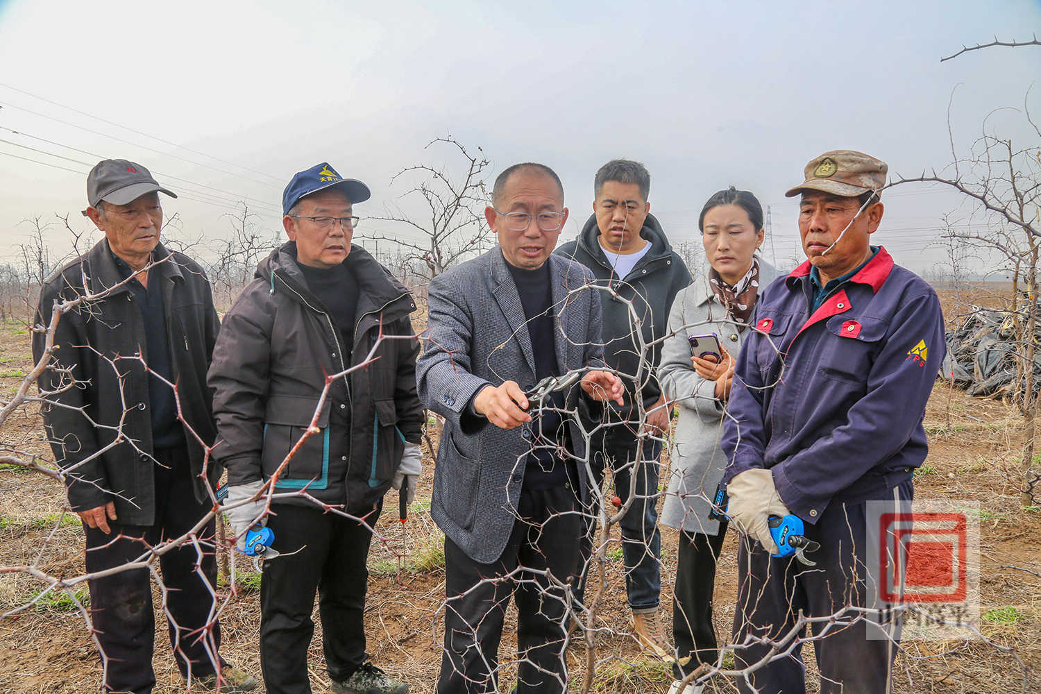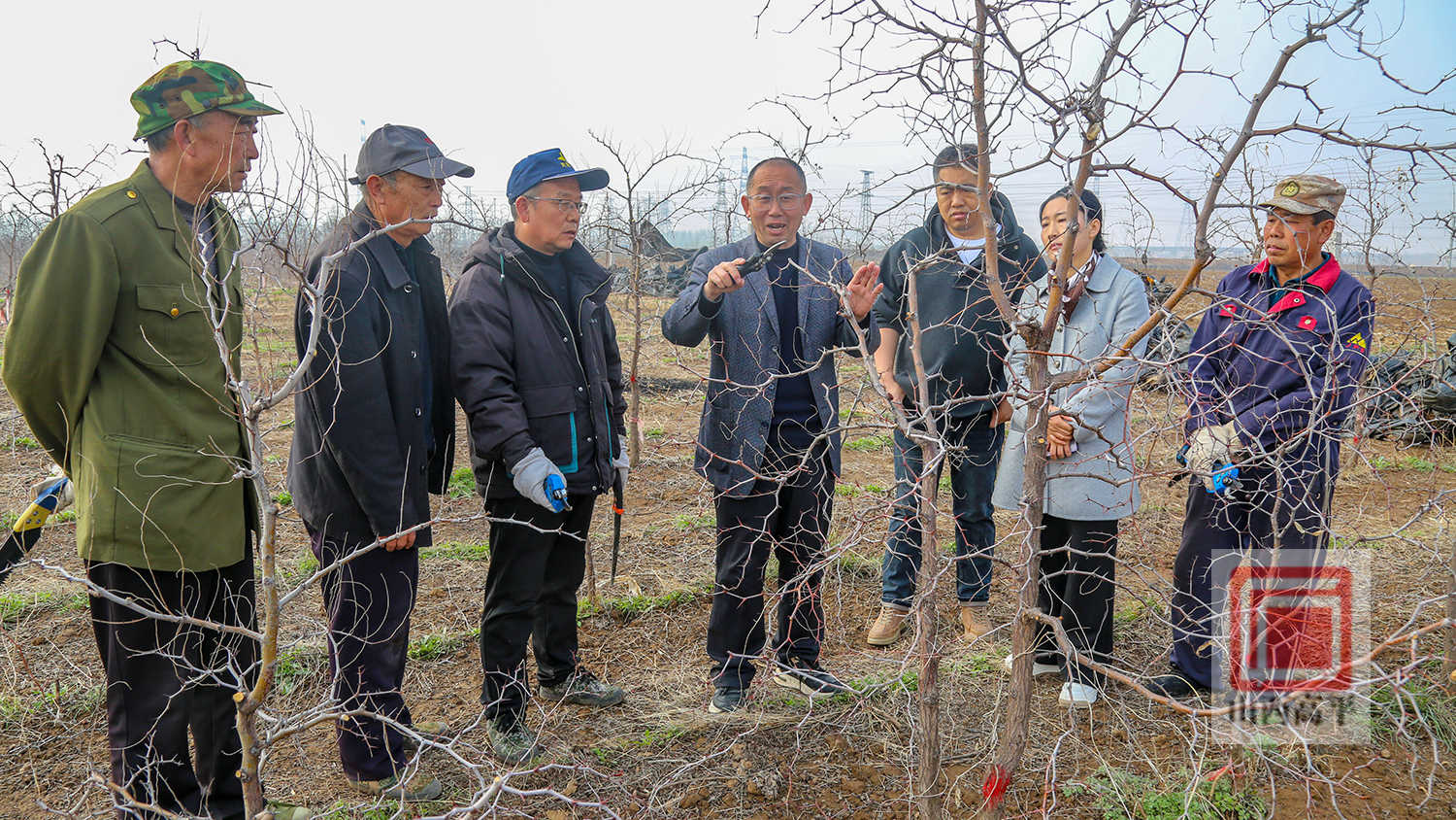 来到酸枣种植基地,农技专家仔细察看酸枣树的长势、萌芽状况及病虫害等情况,开出良方,并与村民们就春季关键管护技术进行现场交流,手把手指导农户进行剪枝、施肥、清园作业,促进酸枣树茁壮生长。