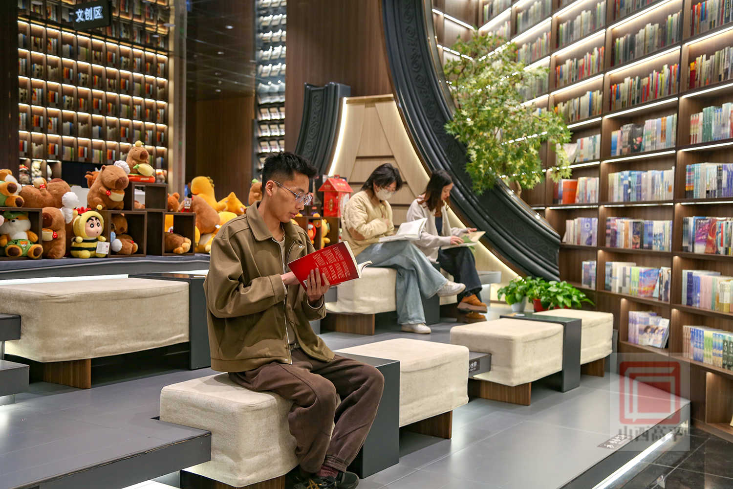 阅读不仅是一种习惯,也可以是一种享受。位于太行国潮奥莱的钟书阁,凭借其独特的设计美学和浓厚的文化气息,迅速成为市民竞相打卡的阅读空间。走进钟书阁,别致的书架造型、柔和的灯光、舒缓的背景音乐,让人瞬间沉静下来。市民王煜杰正穿梭于书架间,仔细挑选心仪的书籍。