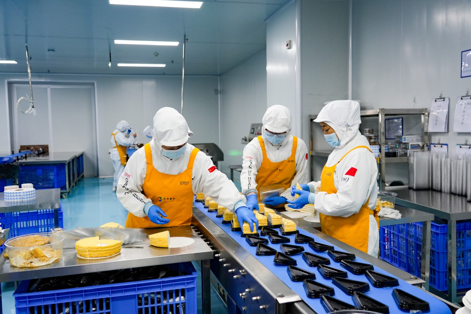 车间主管贾玮说:“当前企业订单非常饱满,半熟芝士、方形慕斯等爆款甜品都在加紧赶制。9条生产线全部运转,通过优化流程、轮岗作业,效率大幅提升,确保全国订单都能如期交付。”