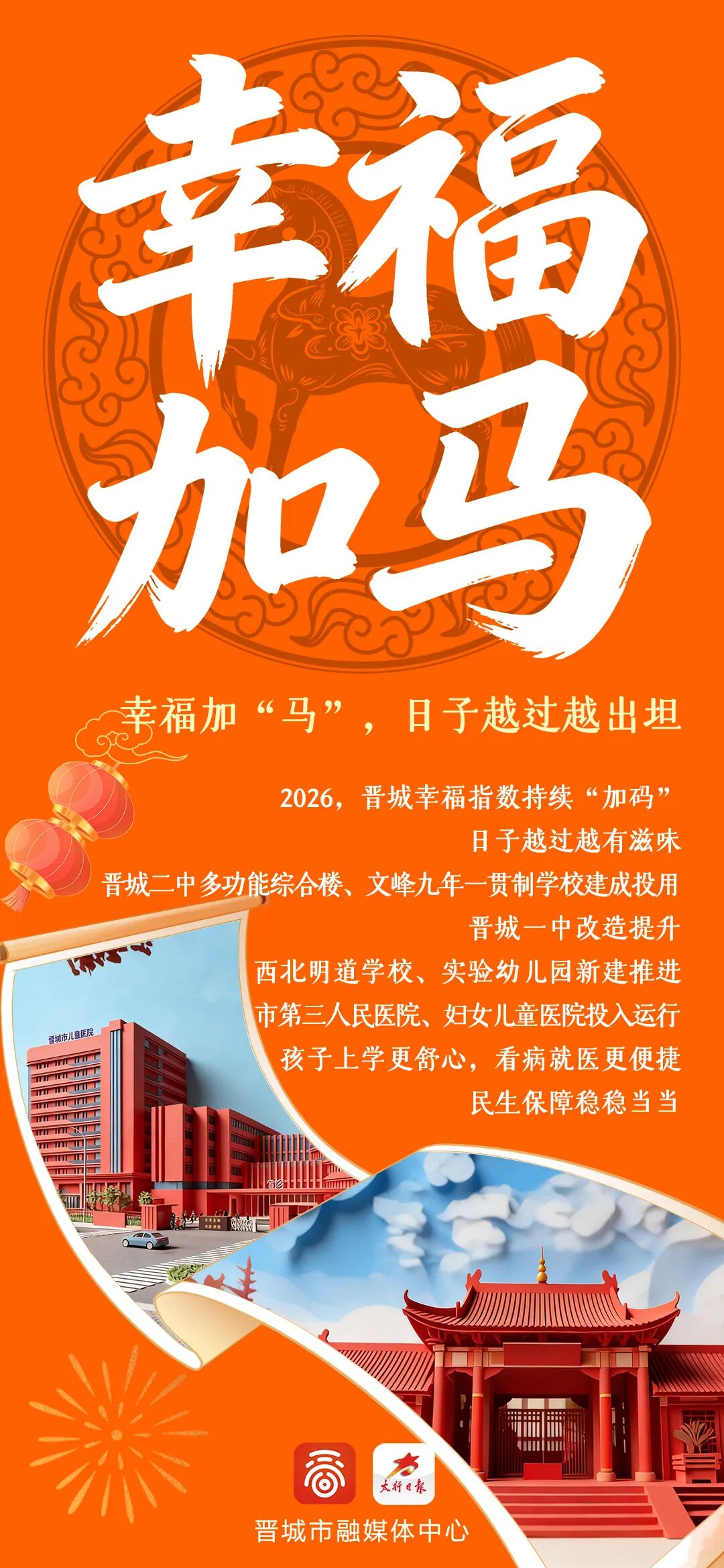 新年新气象,马住新期待!想要“神马”有“神马”~,这就是2026年的晋城,有拼的精神、冲的干劲、闯的勇气,让我们一起拿出骏马追风的毅力、展现横刀立马的魄力、保持快马加鞭的活力,脚踏实地、埋头苦干,共同奔赴中国式现代化的晋城新篇章!