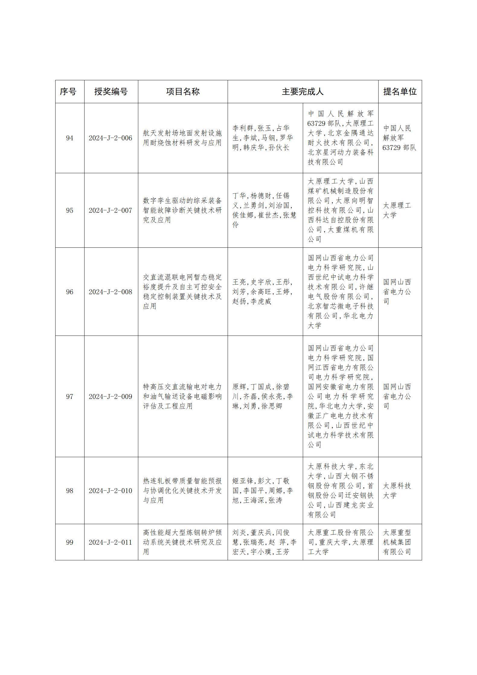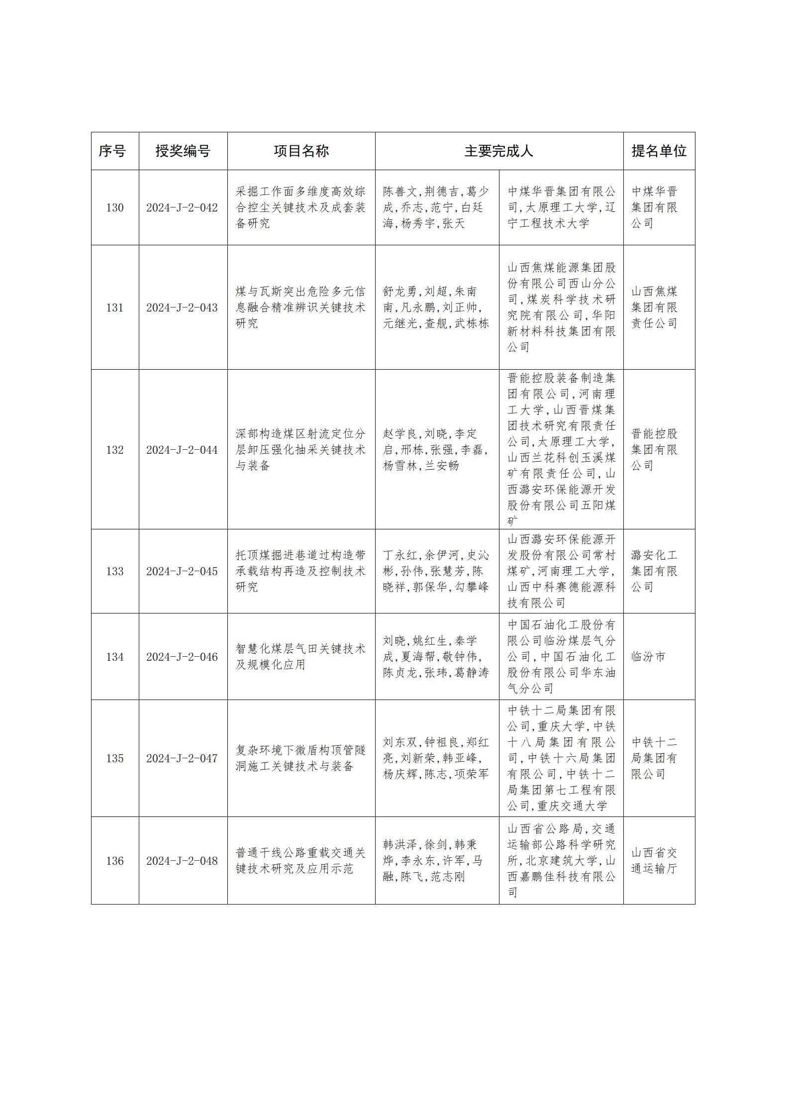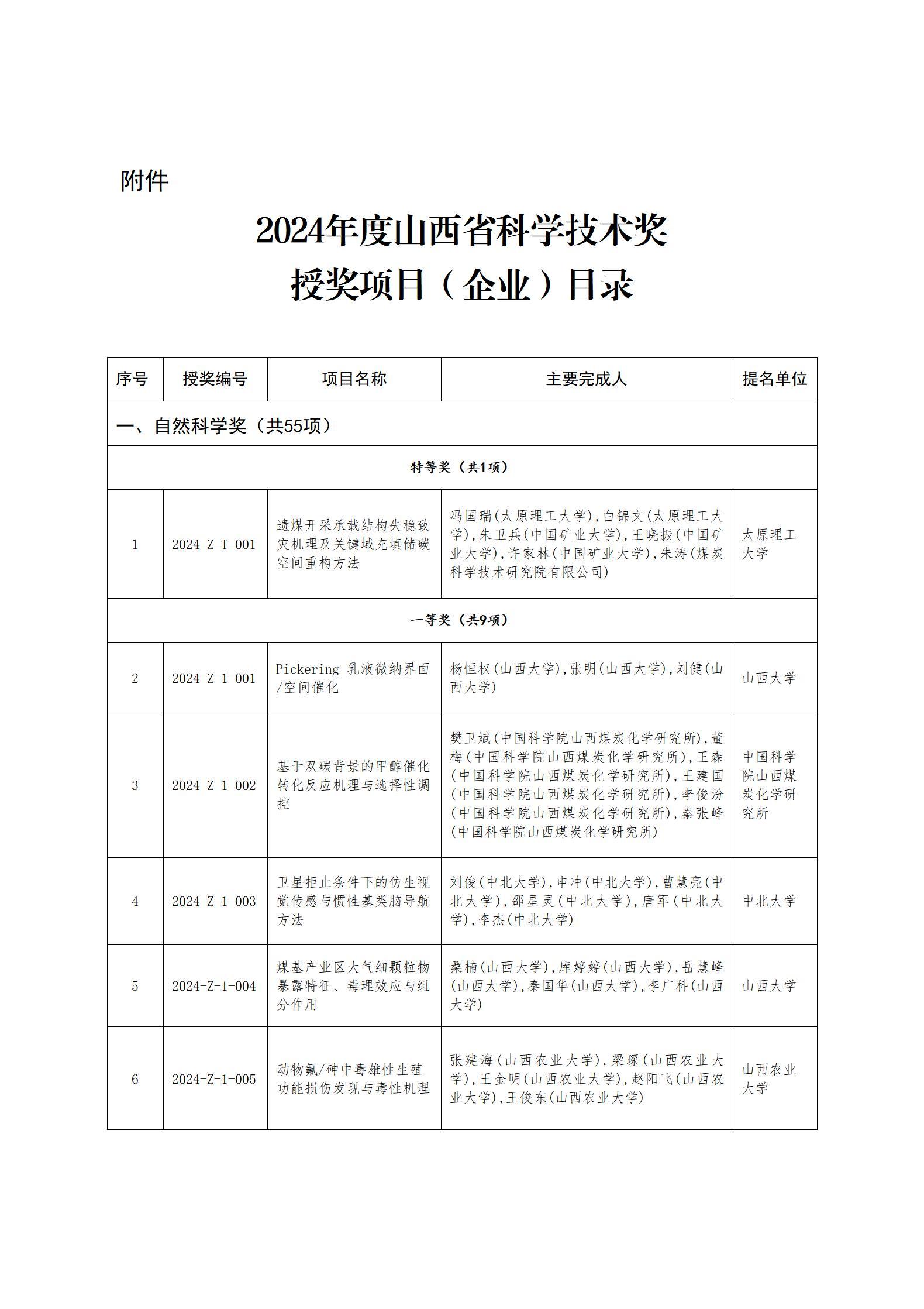 附件:2024年度山西省科学技术奖授奖项目(企业)目录