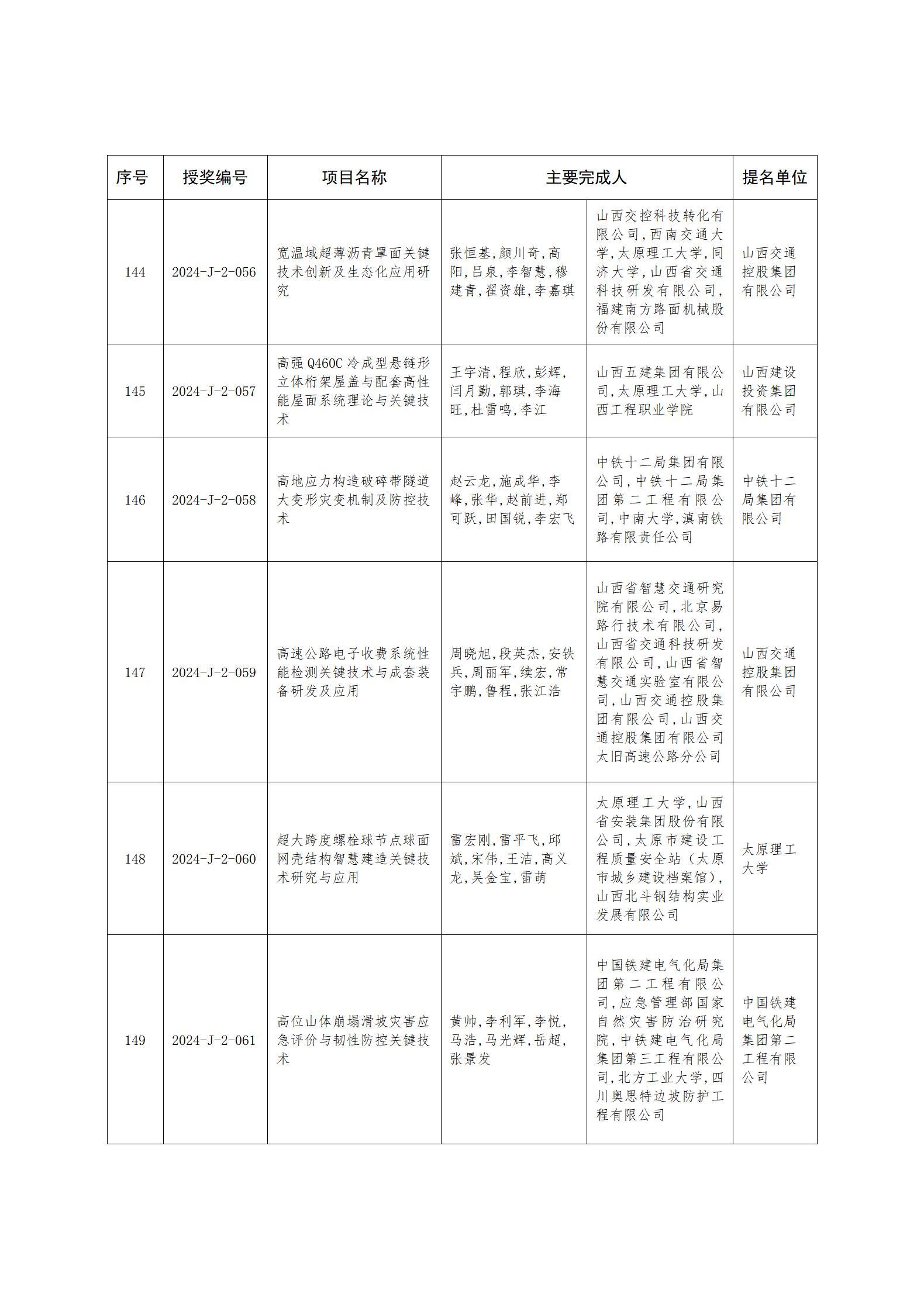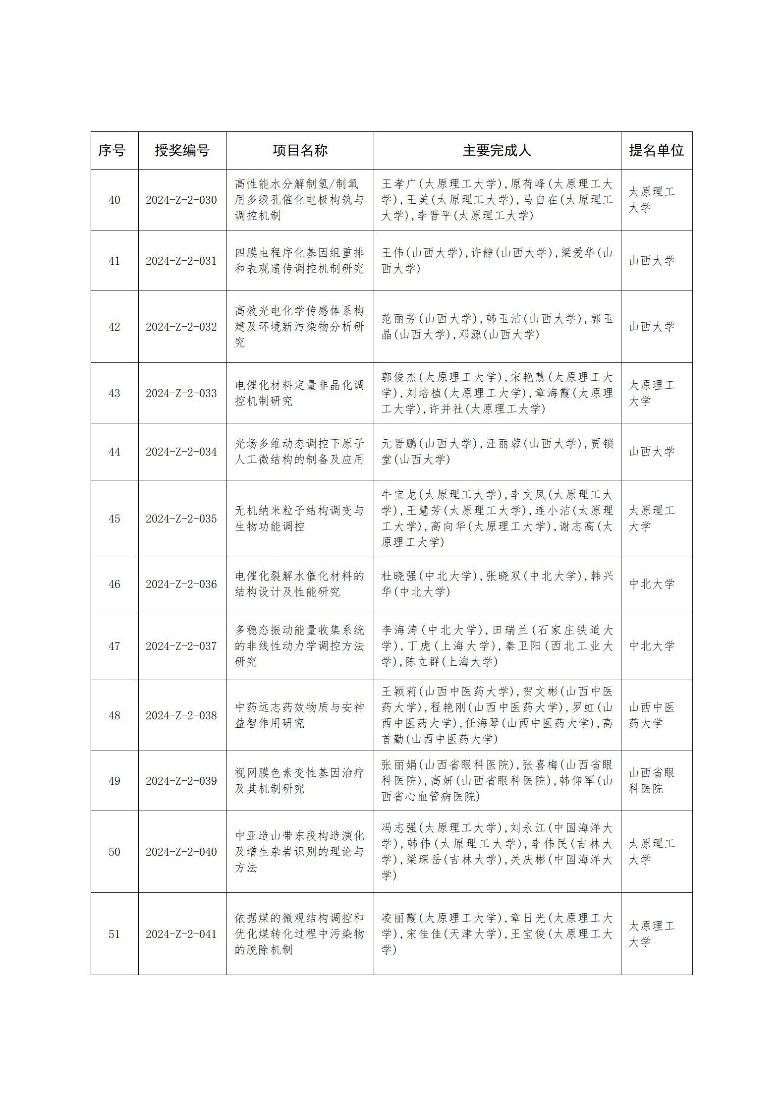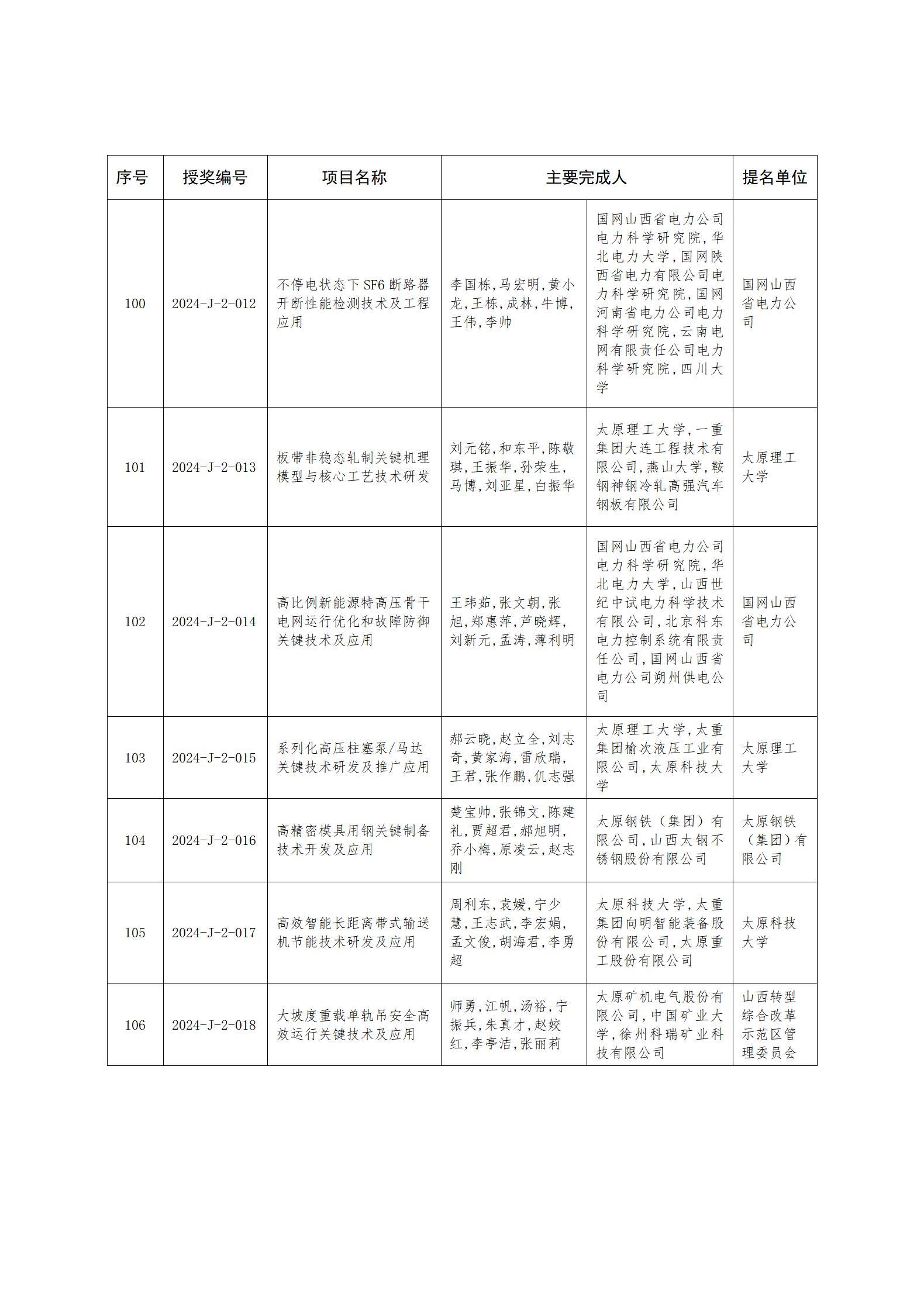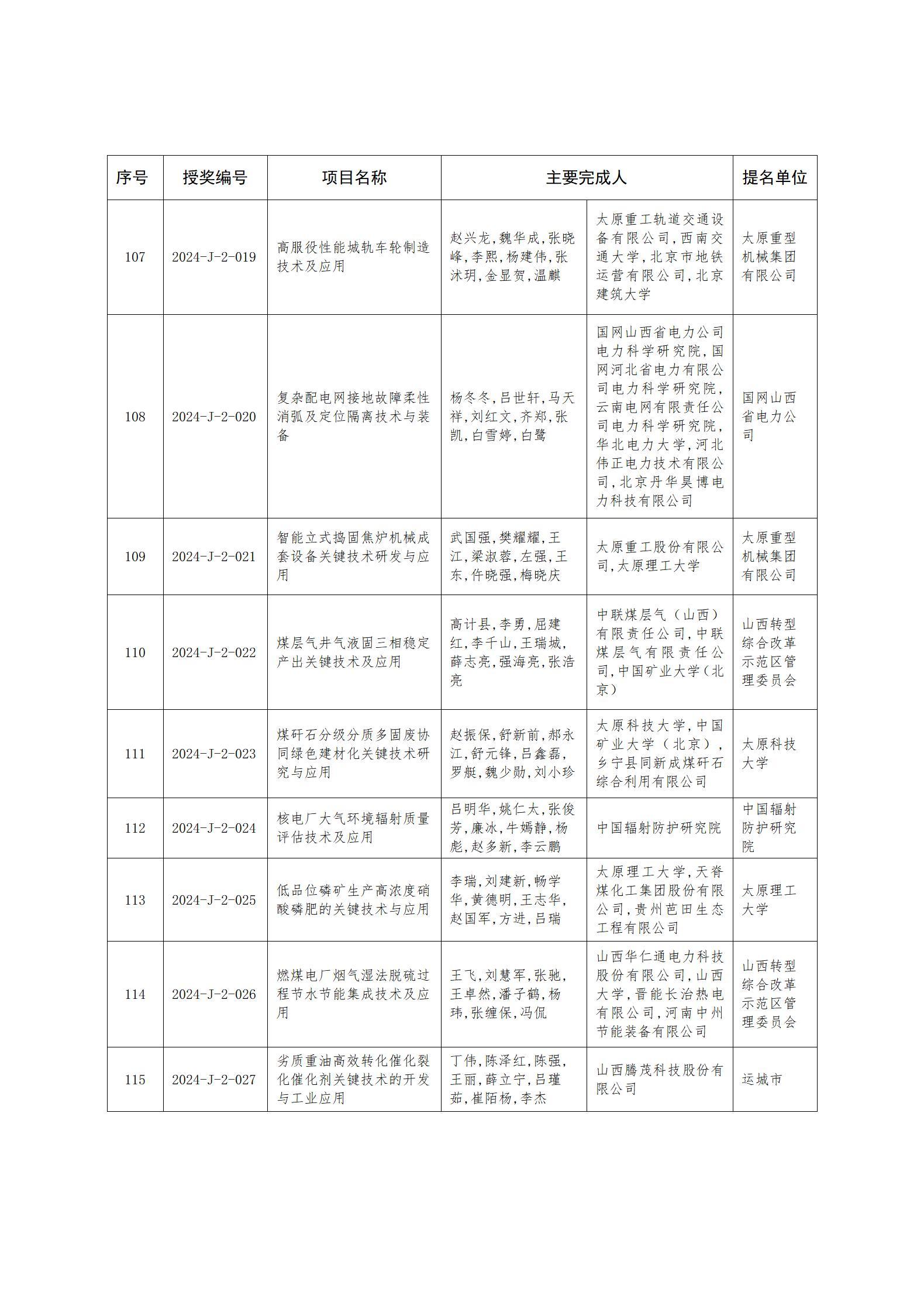 附件:2024年度山西省科学技术奖授奖项目(企业)目录