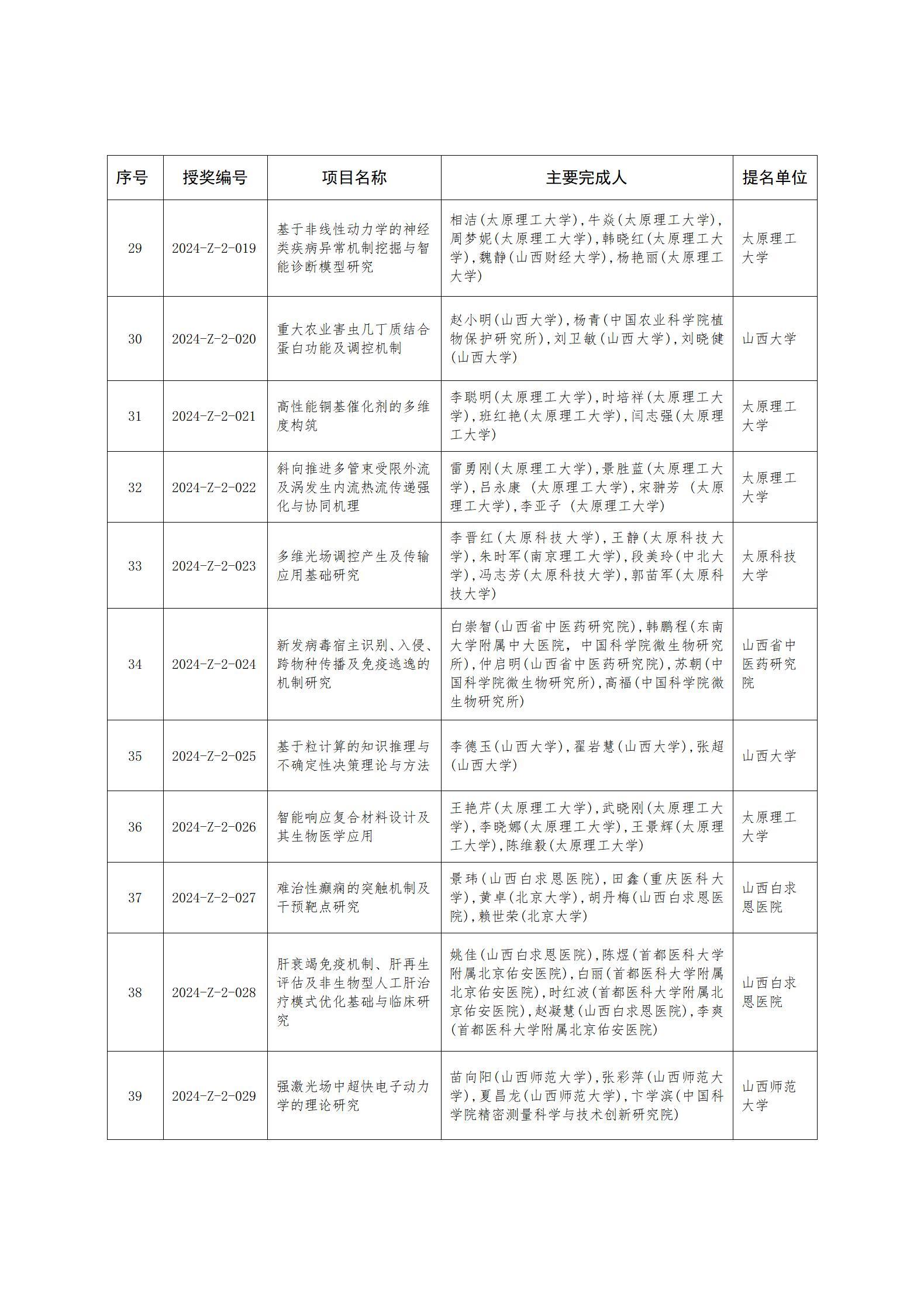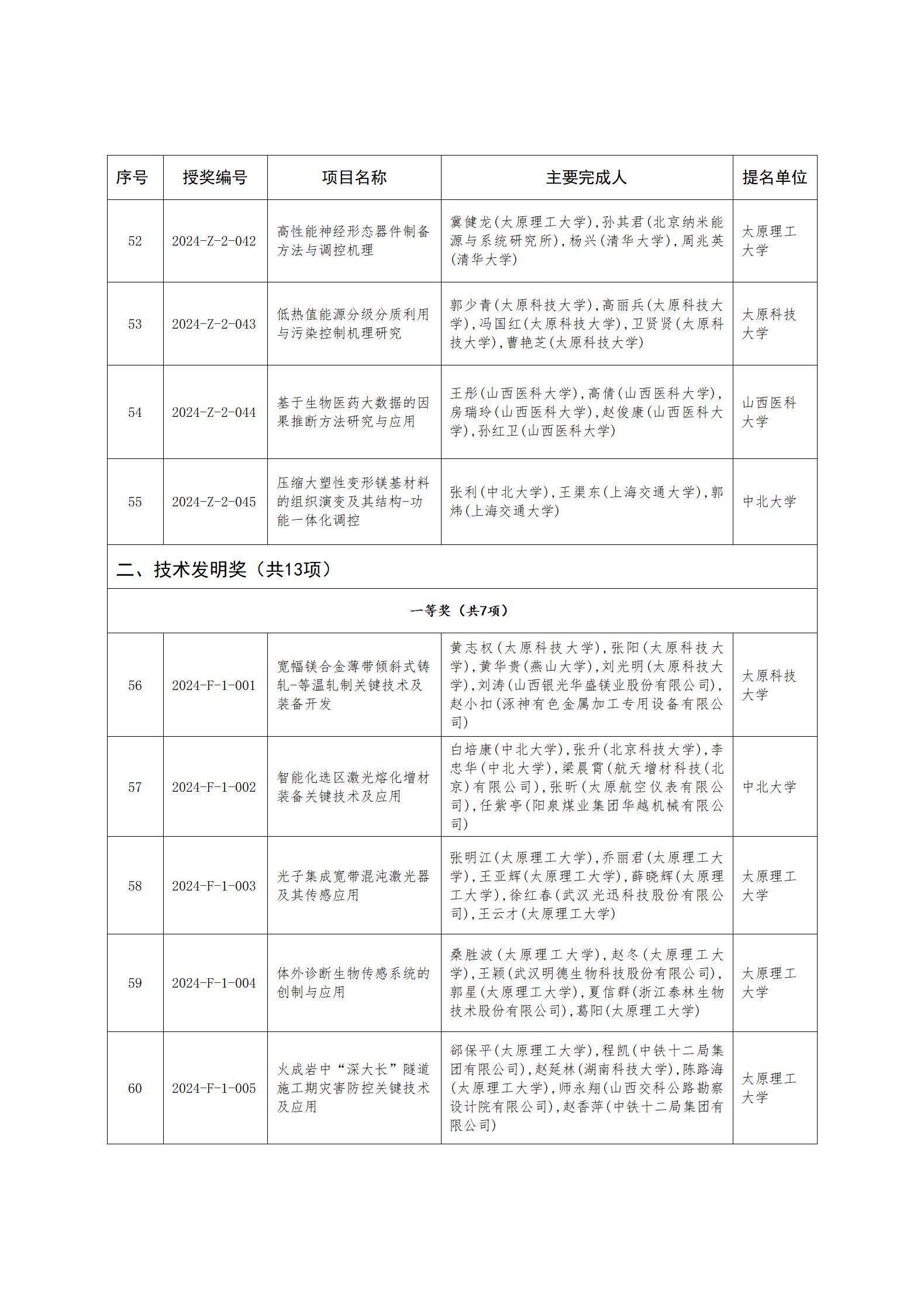 山西省人民政府关于2024年度山西省科学技术奖励的决定