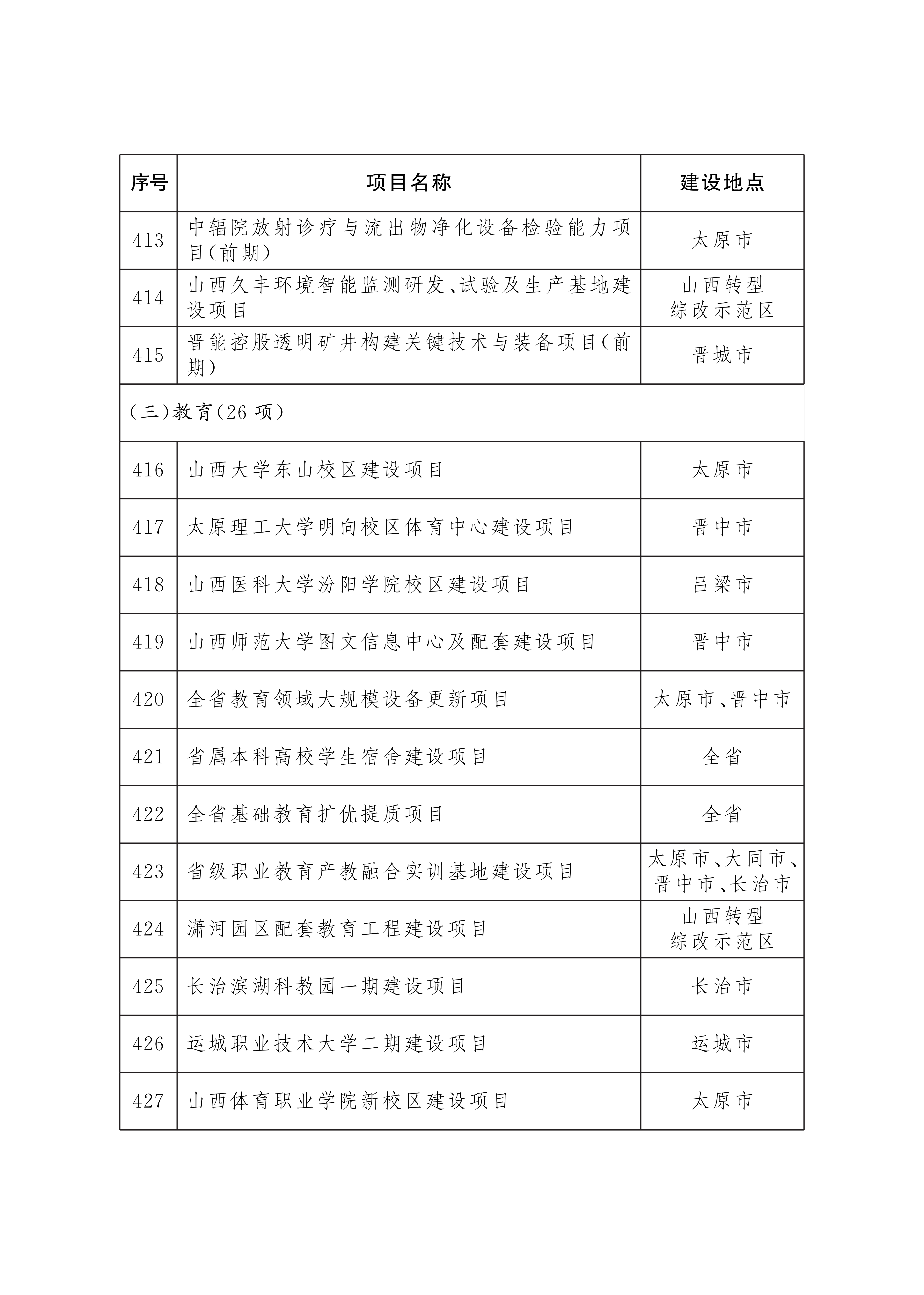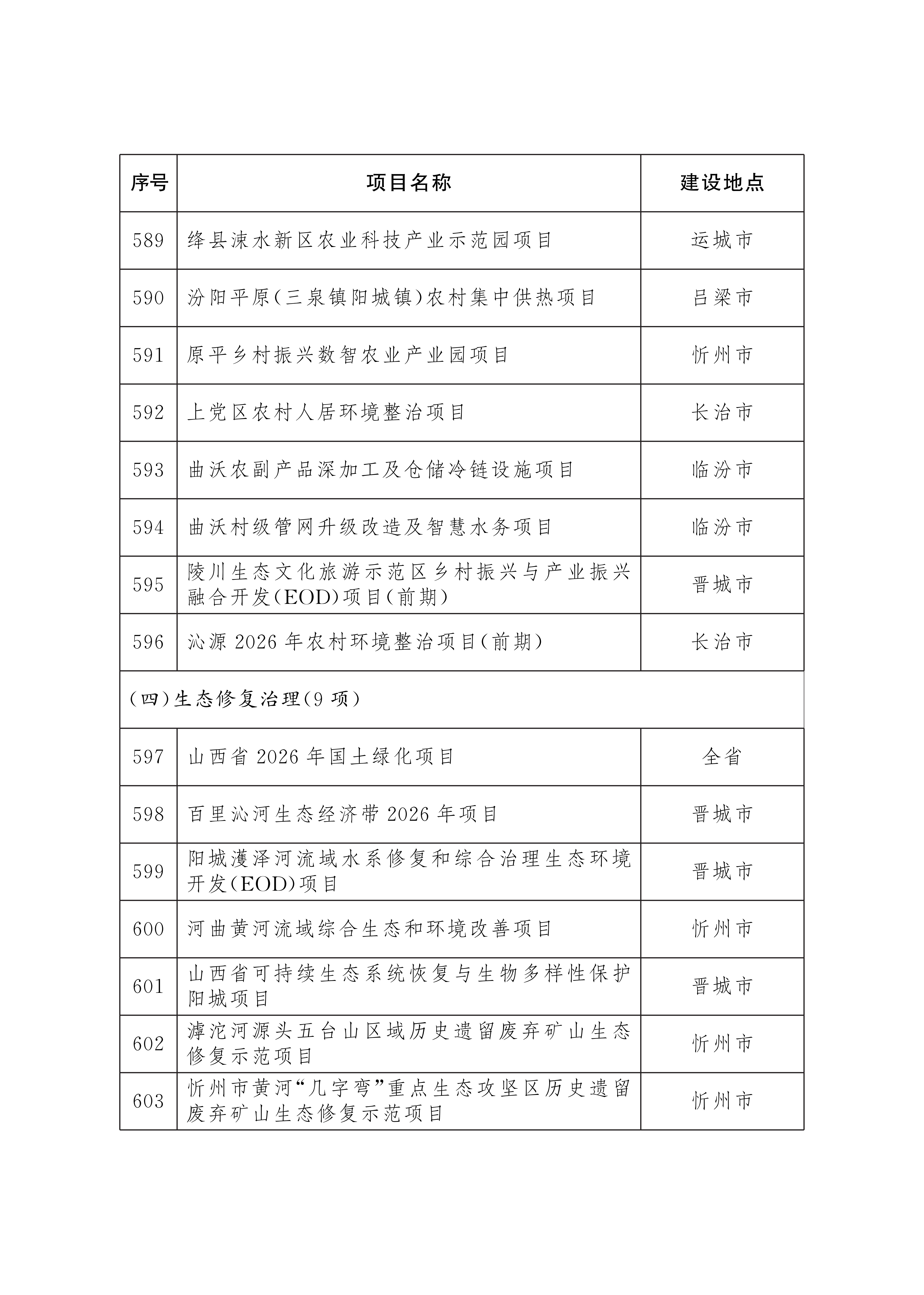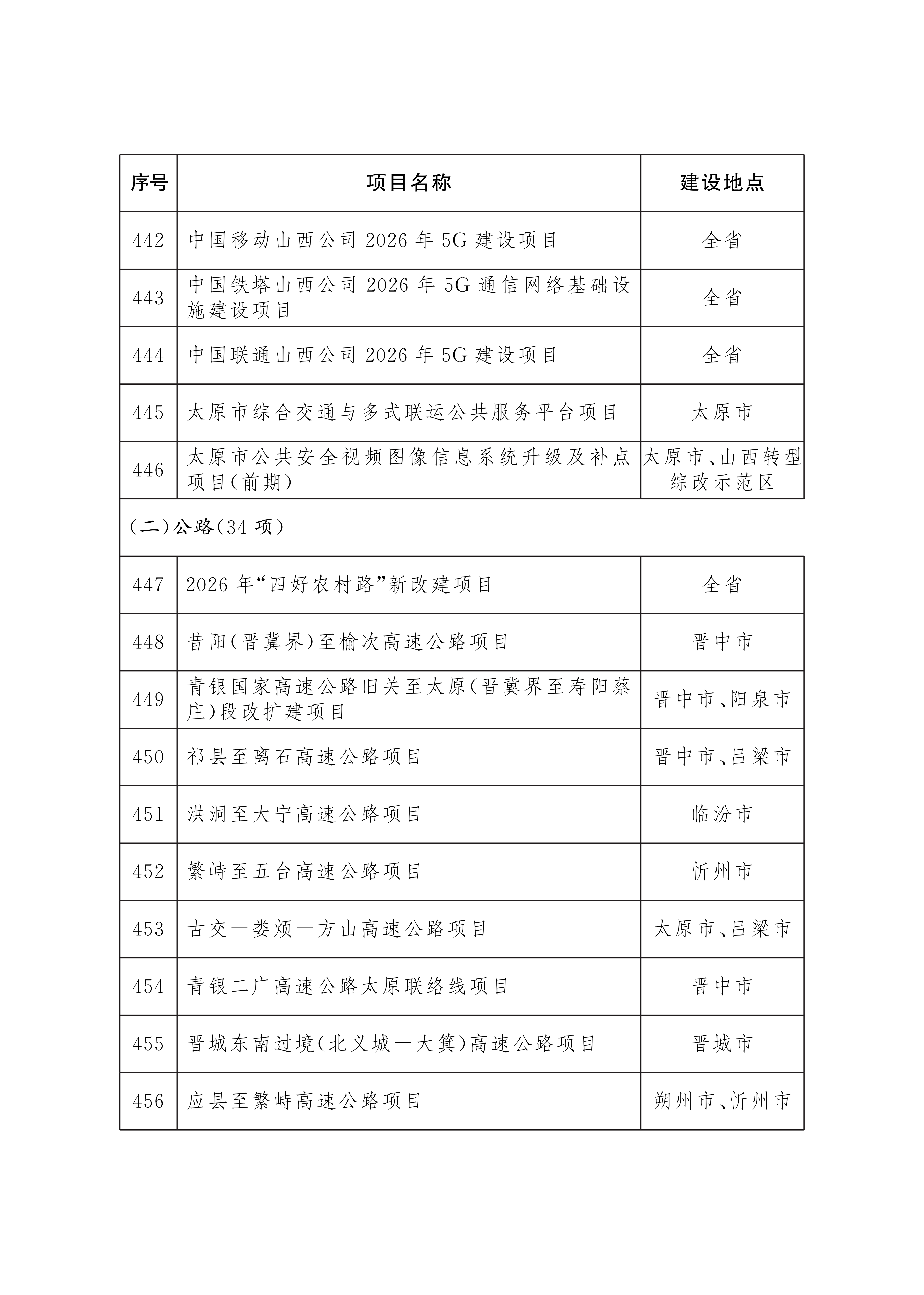 2026年省级重点工程项目名单已经省政府研究确定,现印发给你们,请按照山西省重点工程项目总指挥部工作要求,强化服务保障,协调落实建设条件,做实项目调度推进,确保项目顺利实施。项目建设中确需占用耕地的,要严格落实占补平衡和进出平衡。省级重点工程项目实行动态管理,可根据工作需要和项目实施情况,按程序进行调整补充。