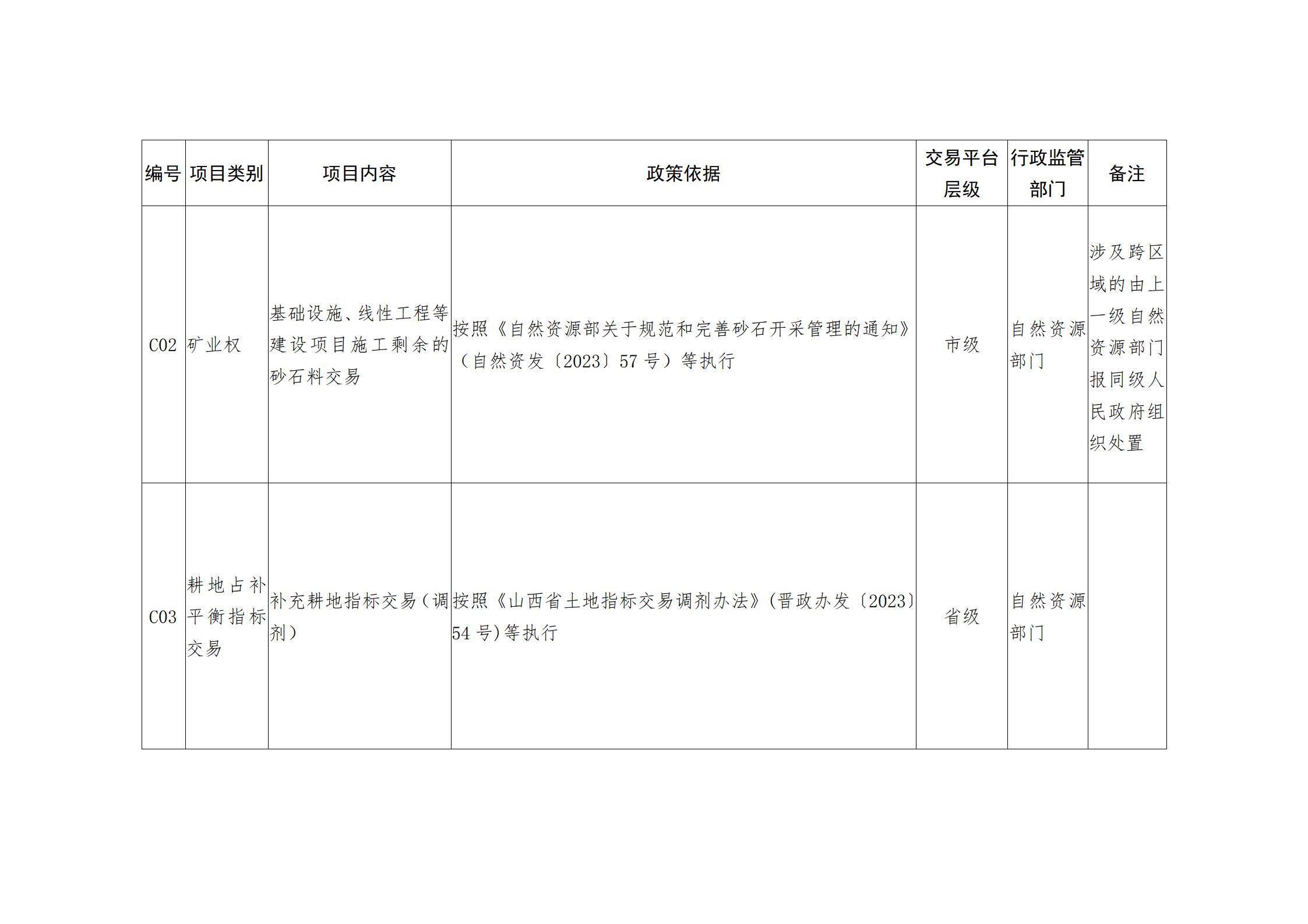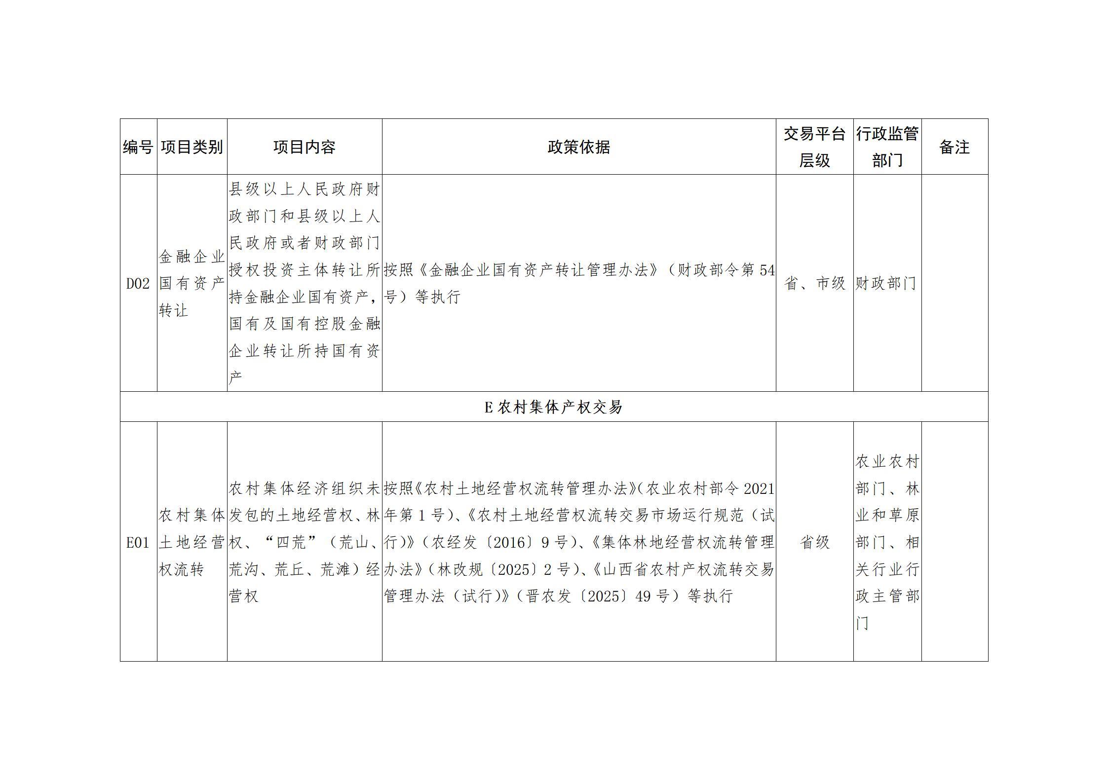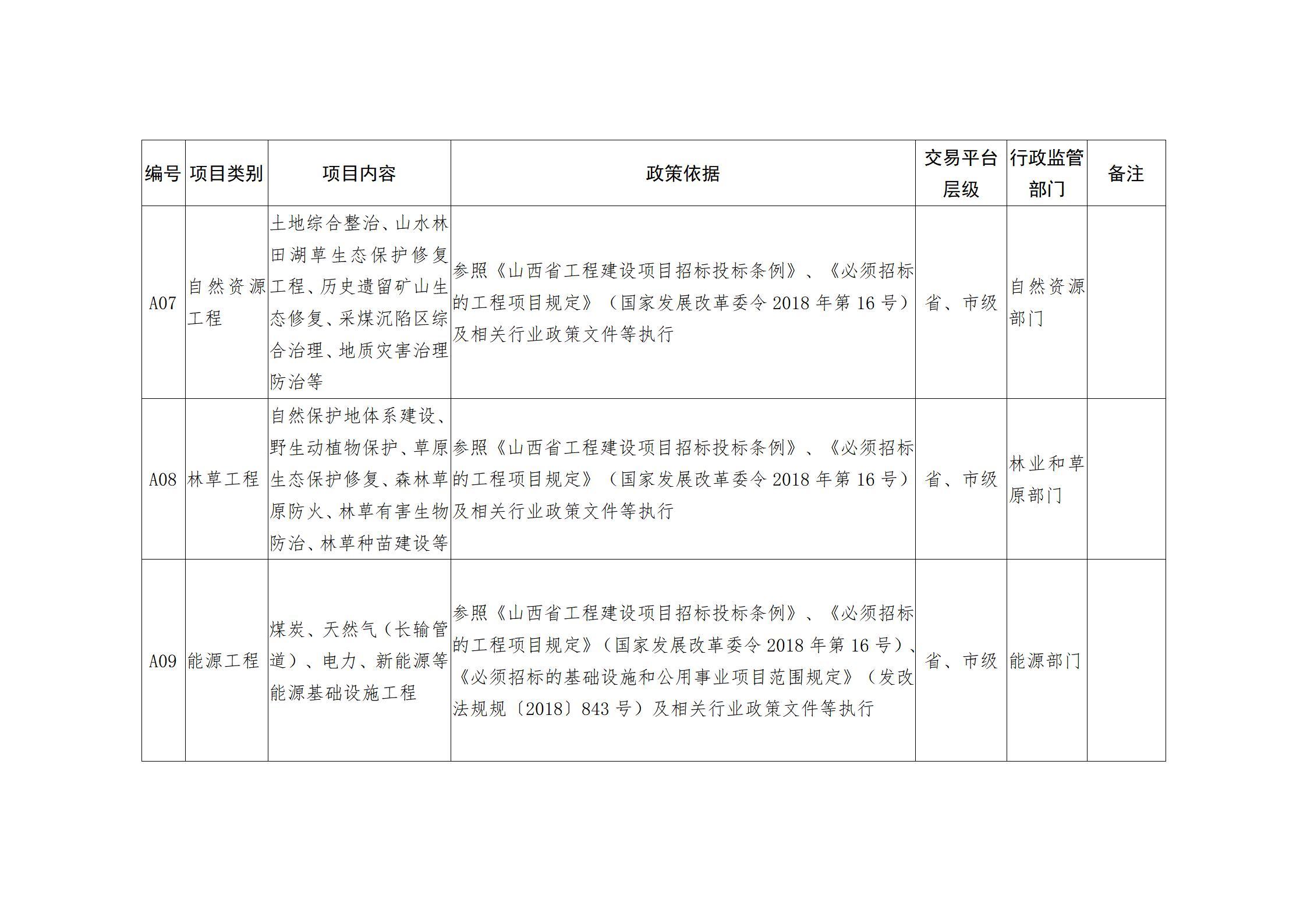 山西省人民政府办公厅关于印发山西省公共资源交易目录(2025年版)的通知