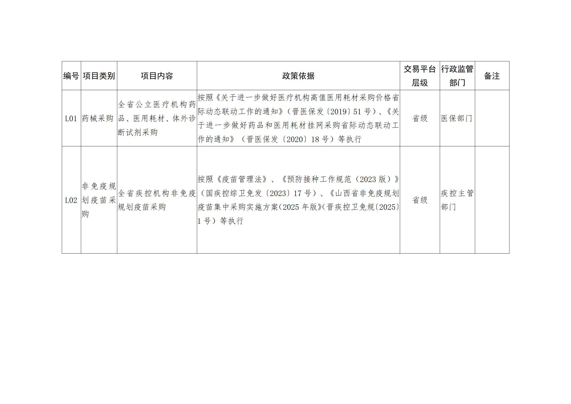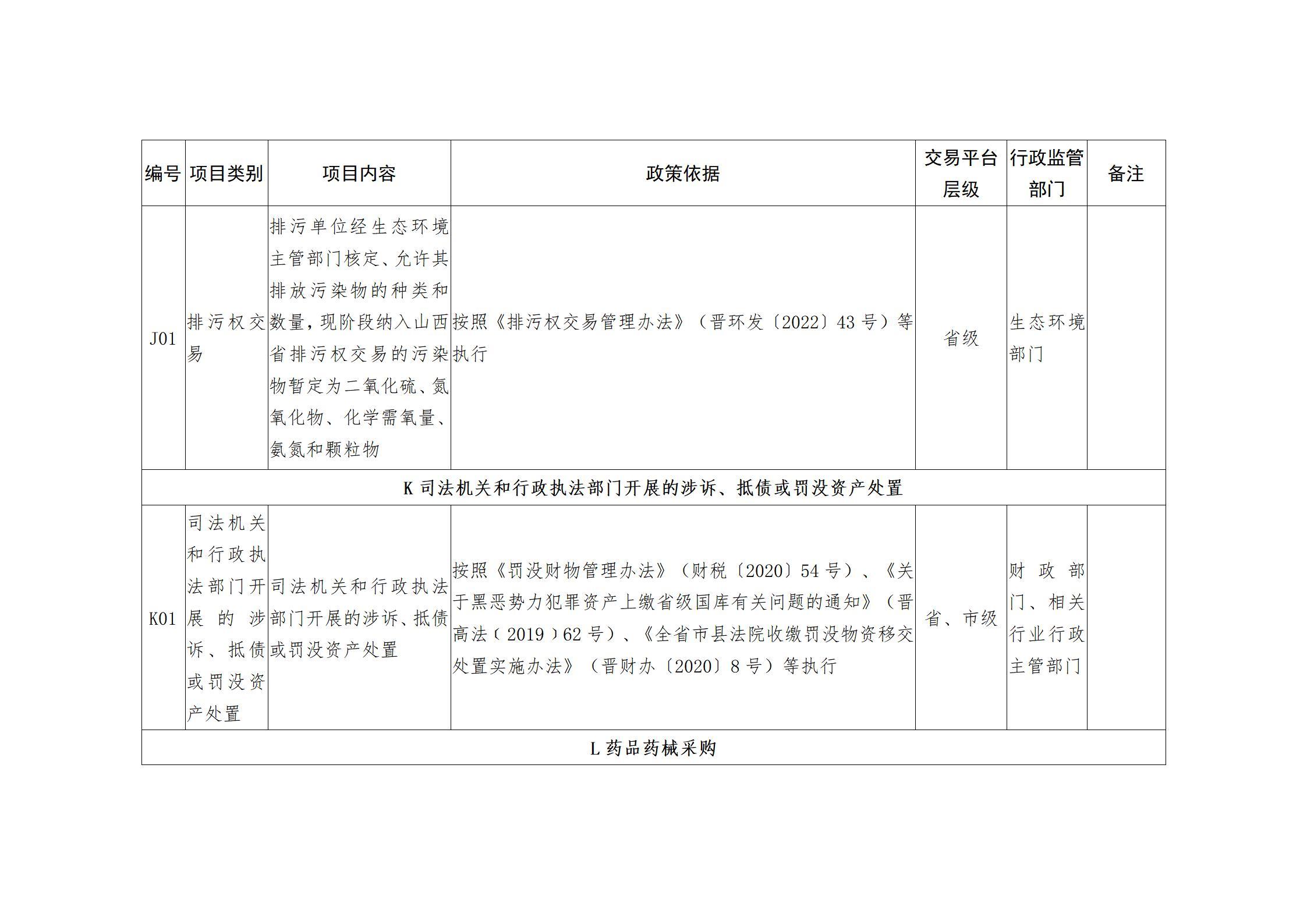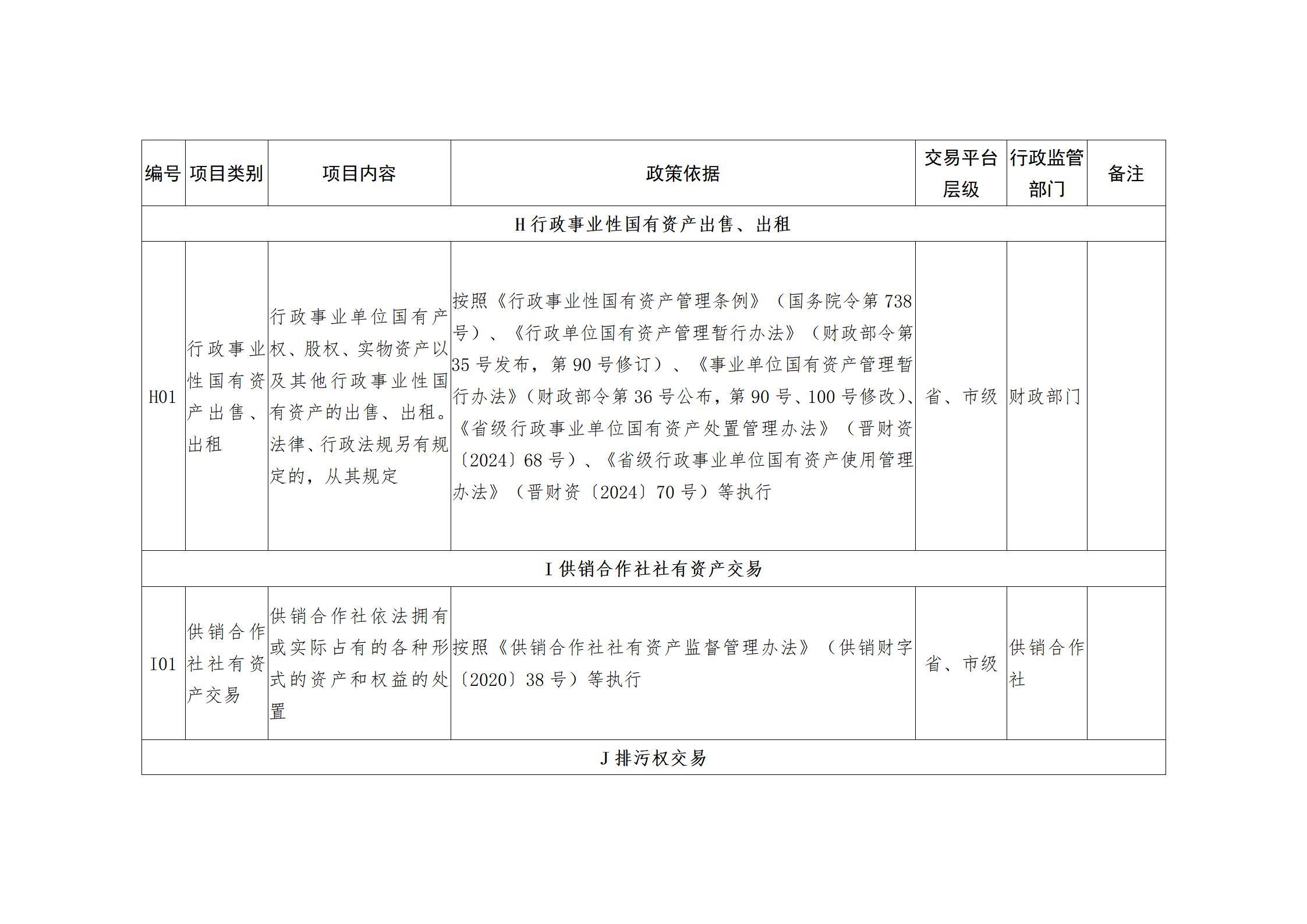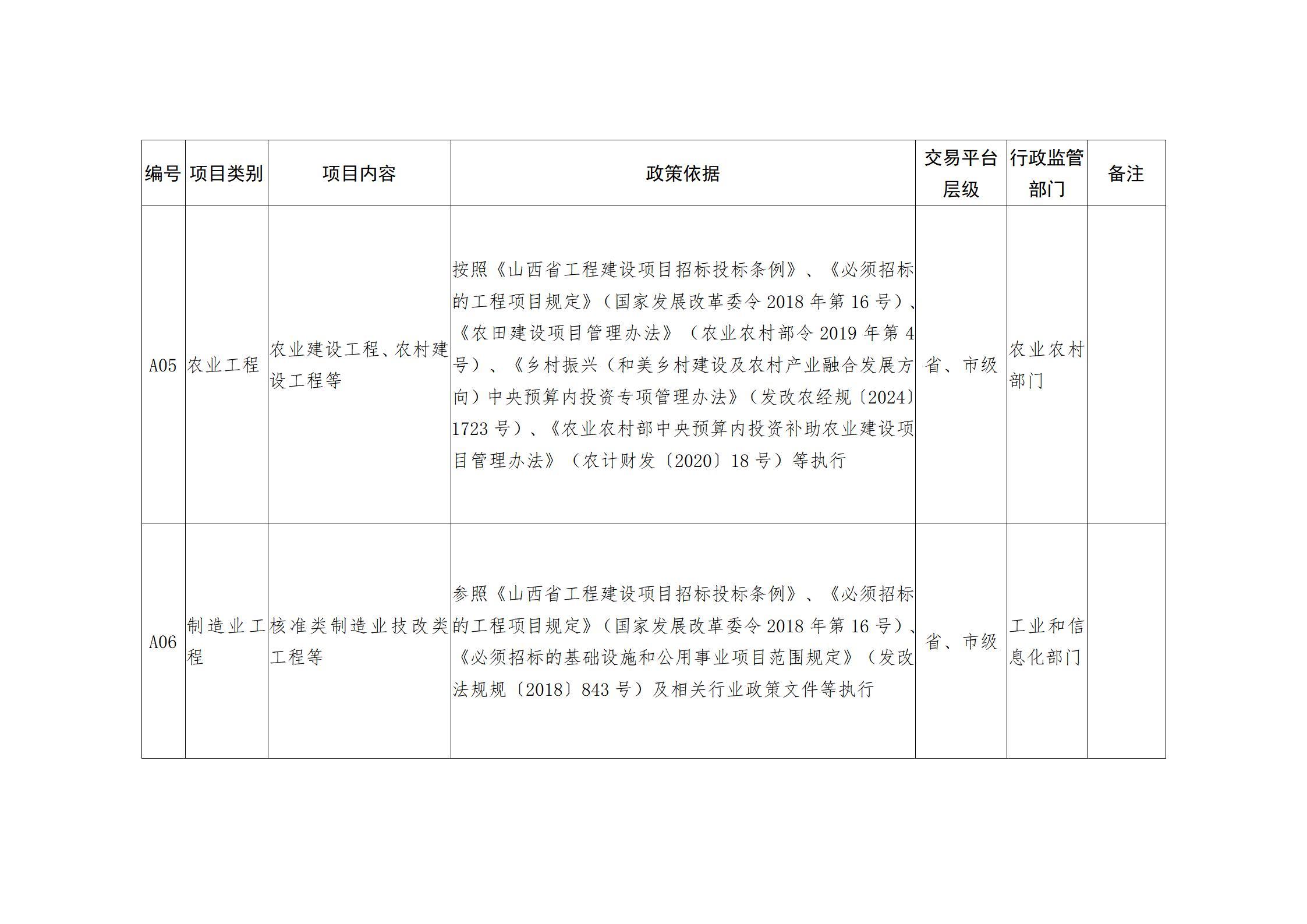 山西省人民政府办公厅关于印发山西省公共资源交易目录(2025年版)的通知