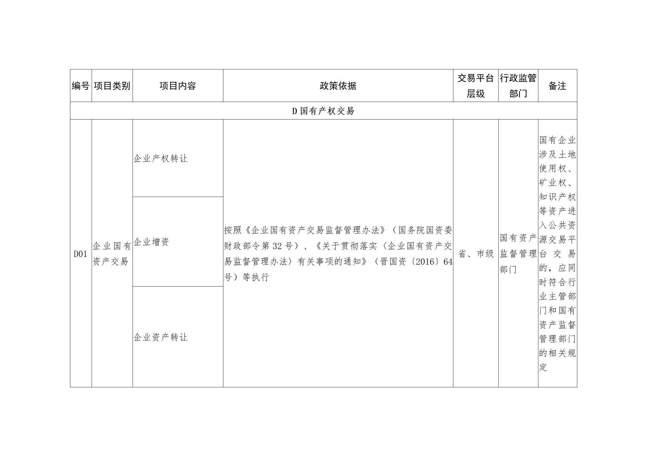 关于印发山西省公共资源交易目录