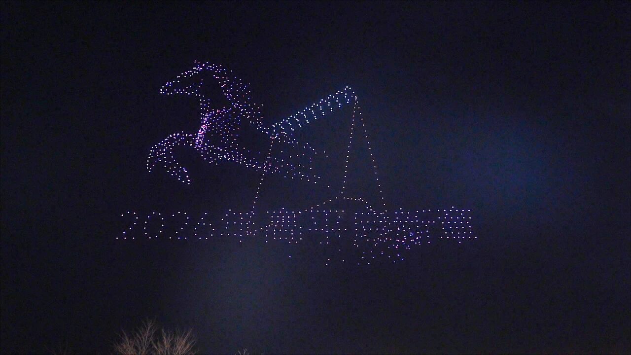夜幕降临,晚上8时整千架无人机如繁星般升空,瞬间点亮了喜镇苏庄的夜空,表演以“喜文化”为主题,通过精准的编队飞行,在夜空中变幻出“苏庄有喜”“骏马腾飞”等极具视觉冲击力的图案,现场爆发出阵阵欢呼,游客纷纷举起手机记录下这震撼的一幕。