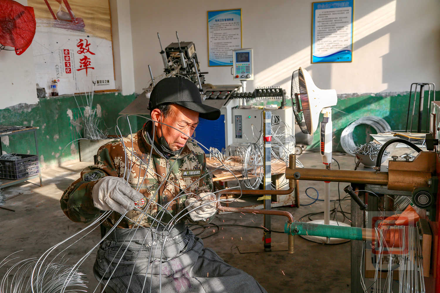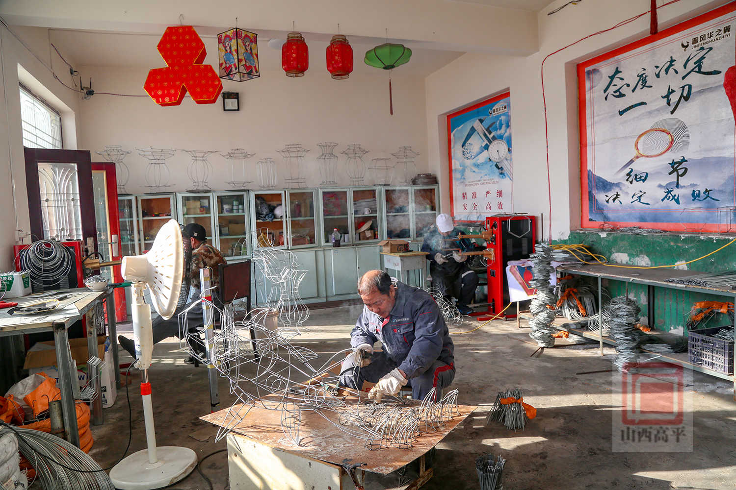 来到炎帝宫灯厂,一盏盏手工花灯错落摆放,造型别致、韵味十足。花灯制作车间里,十多名村民正忙着制作一批喜文化宫灯,只见他们先用智能折弯机折出宫灯骨架,点焊固定成型后,再手工进行裁剪、裱糊、装饰,忙碌的身影勾勒出最浓的年味。