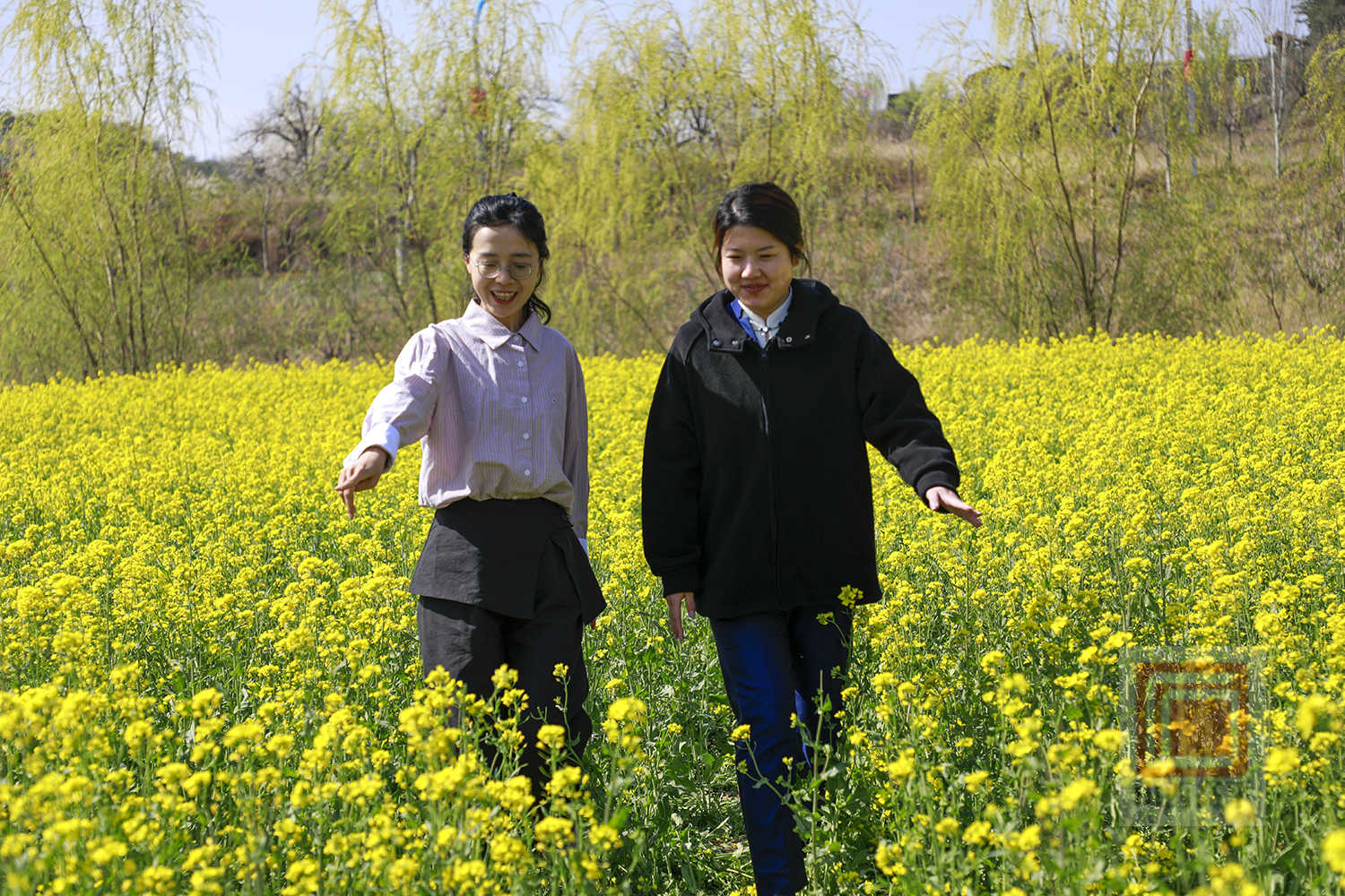 来到油菜花田,满眼金黄扑面而来,与釜山的湖光山色交织成一幅流动的春日画卷。连片的花海随风起伏,散发出阵阵淡淡的清香,引得蜜蜂争相采蜜。游客们徜徉在花海中,或驻足拍照,或漫步赏花,欣赏醉人春色。还有不少摄影爱好者,穿梭在花海中,用镜头定格这一春日盛景,记录下大自然的美好。